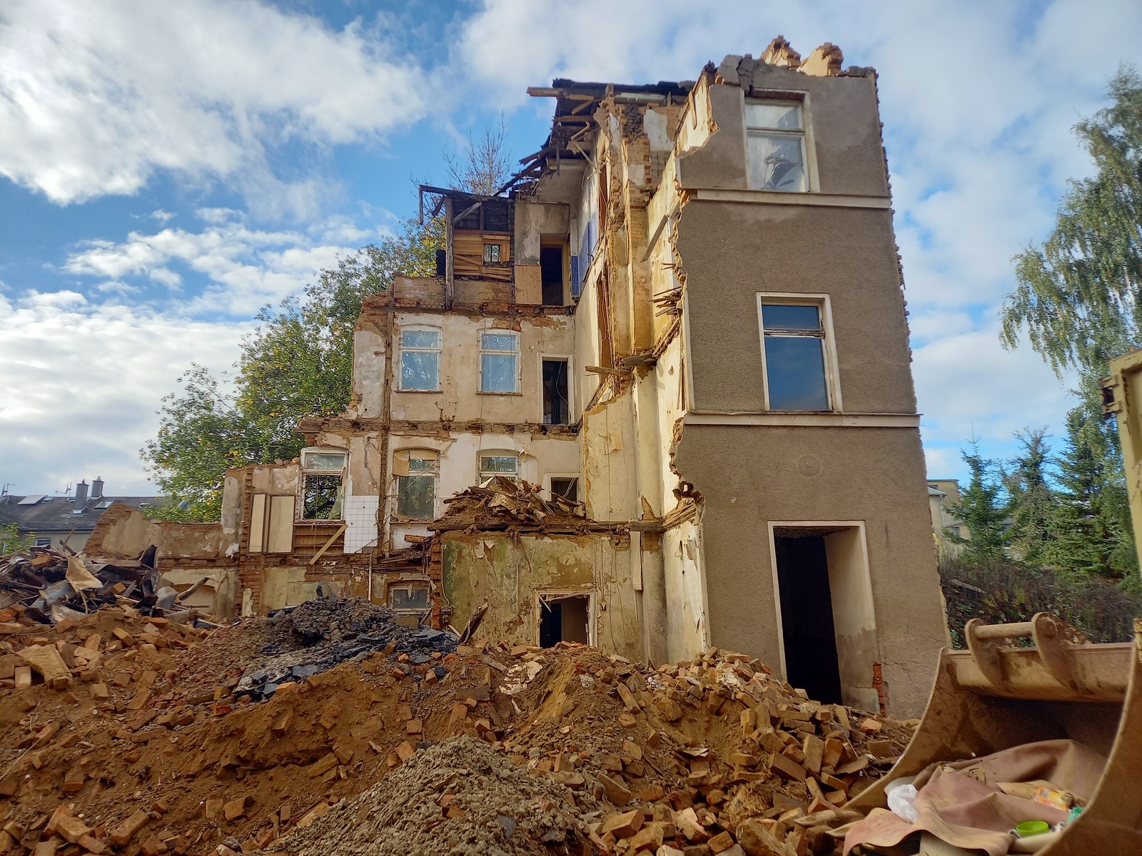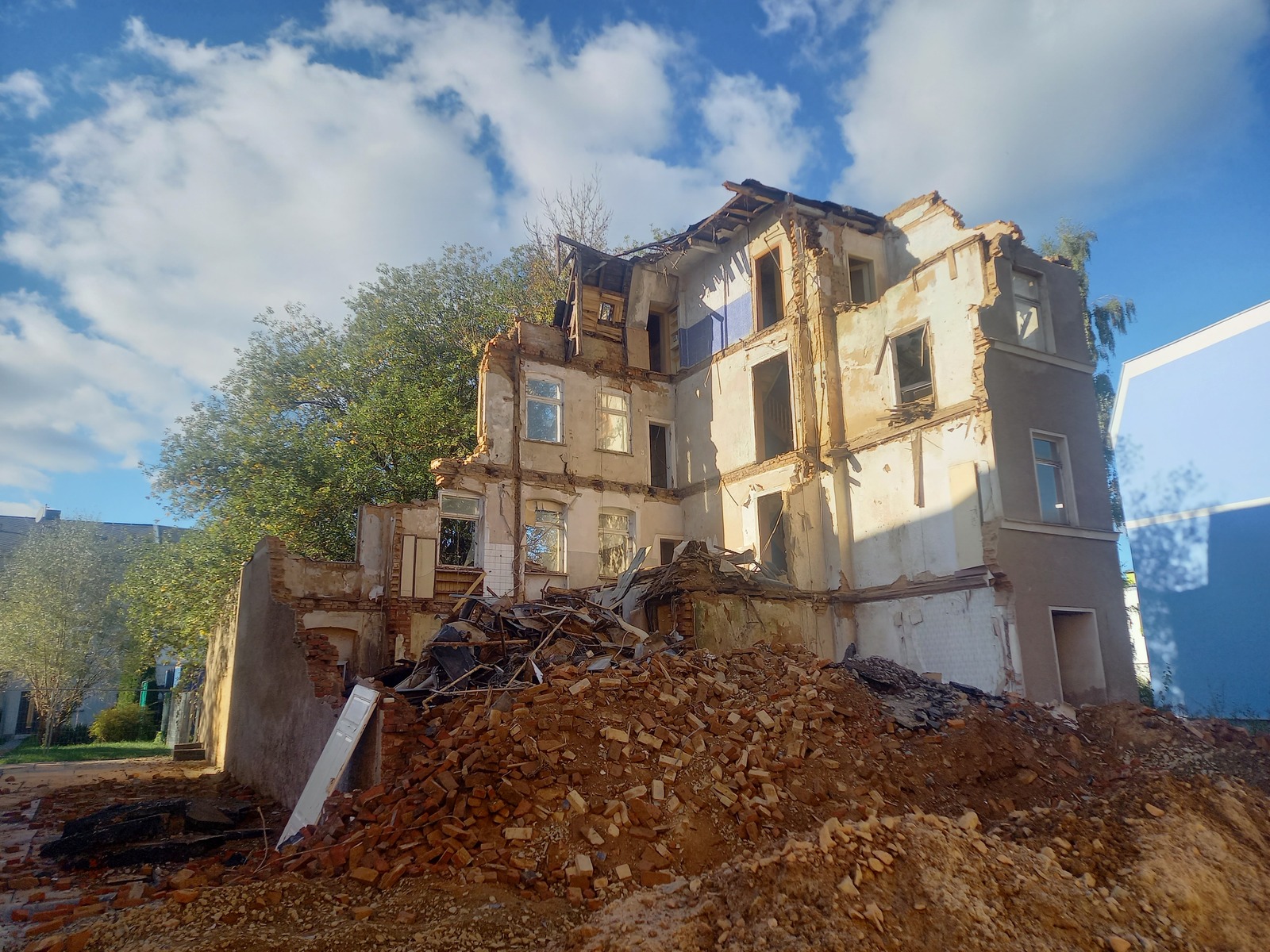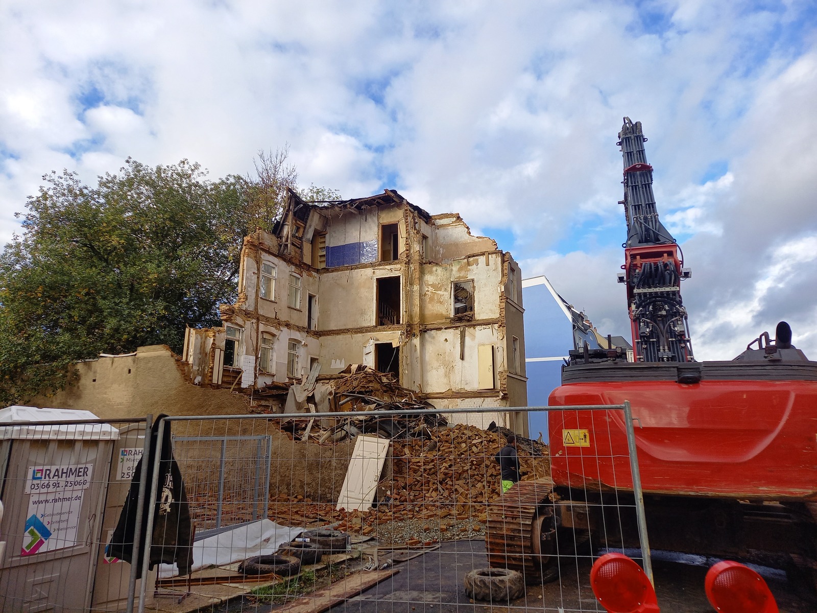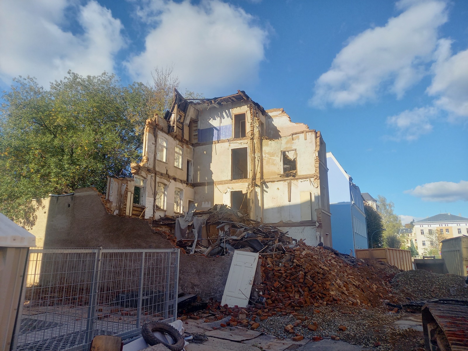 Blick von der Beethovenstraße kurz vor der Sprengung