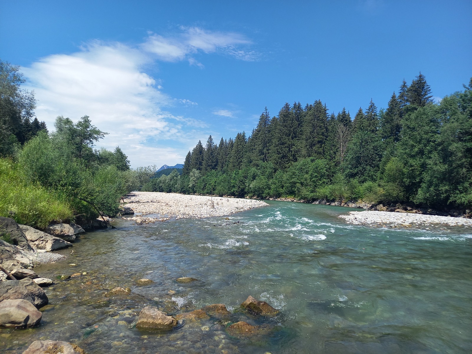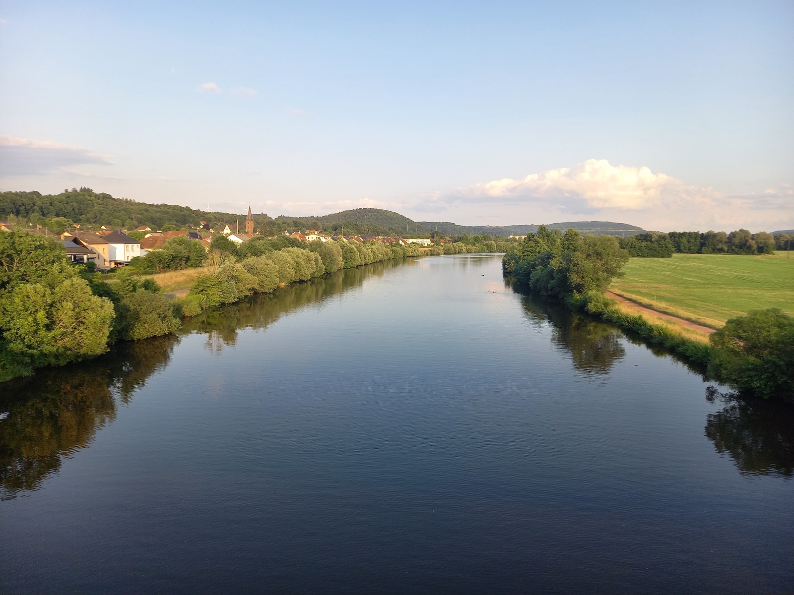 Blick von der Brücke in Löf flussabwärts