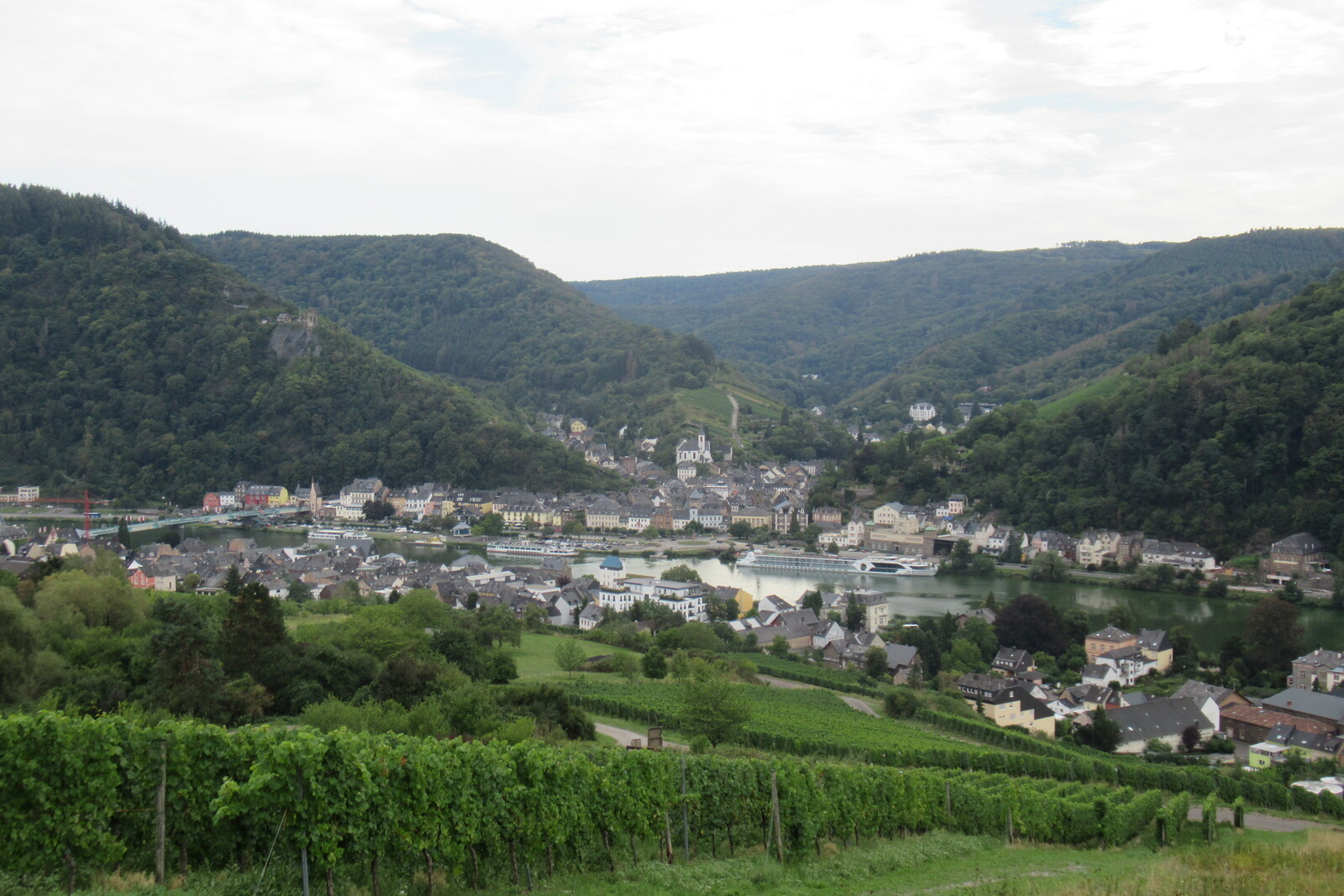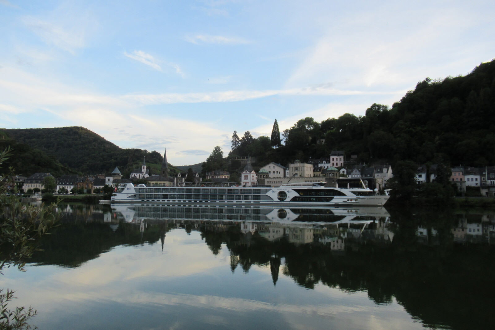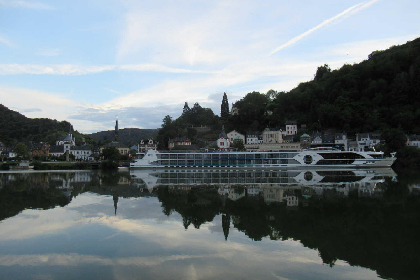 Kreuzfahrtschiff vor Trarbacher Altstadt