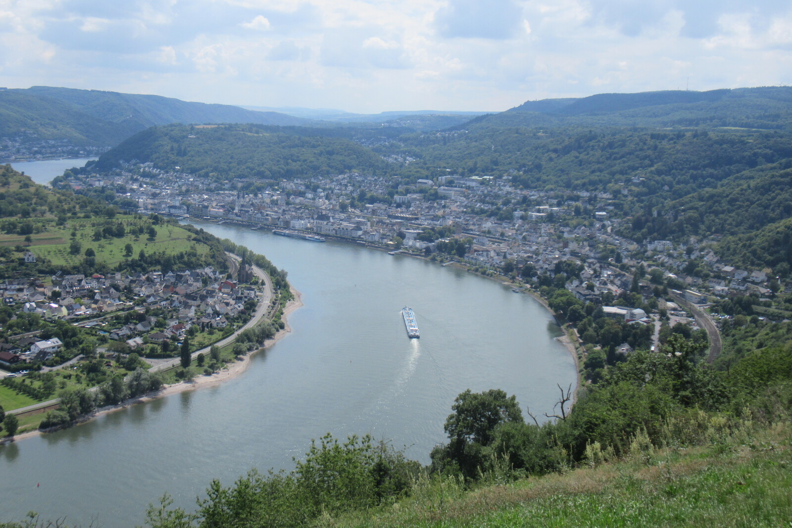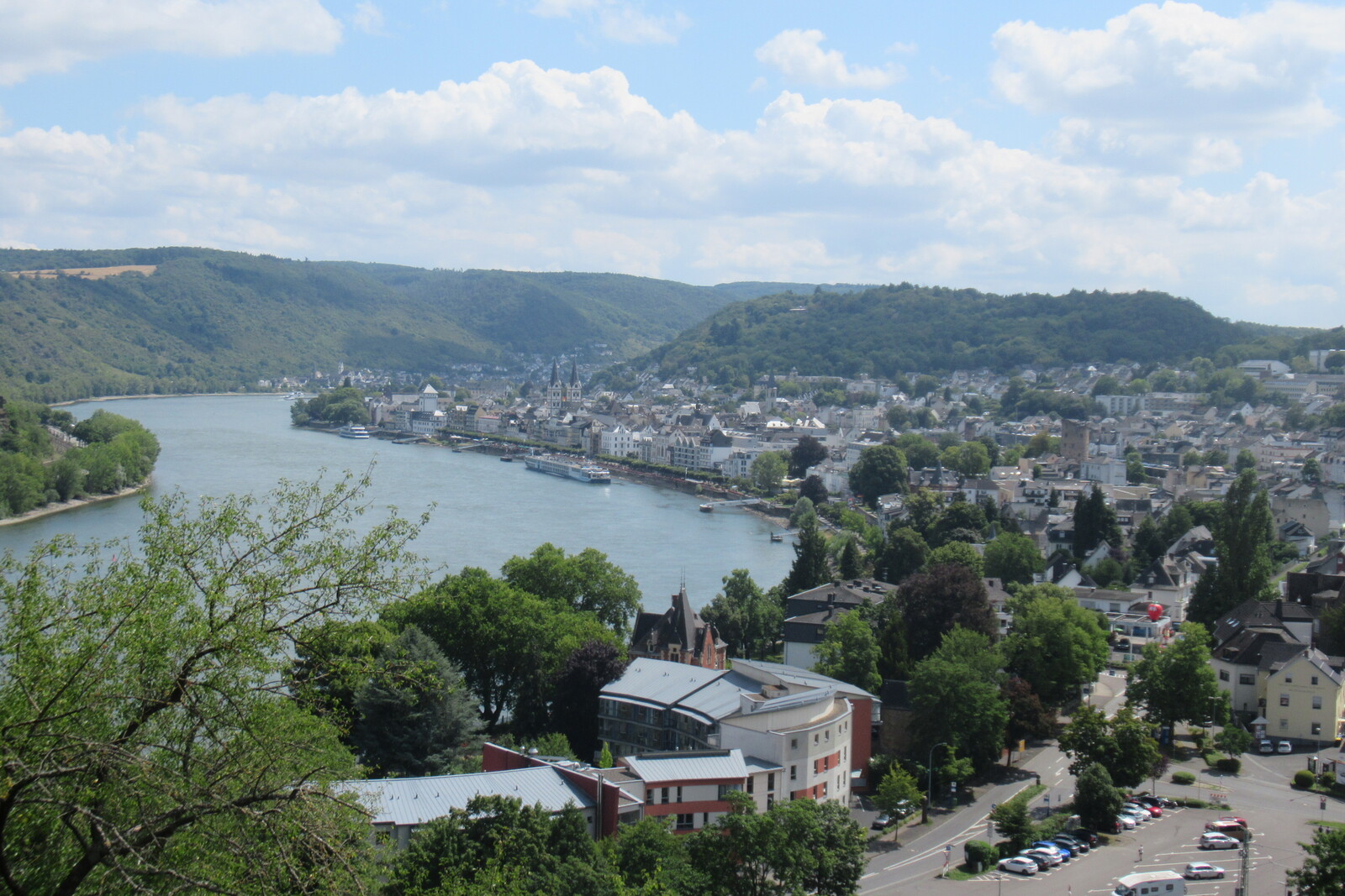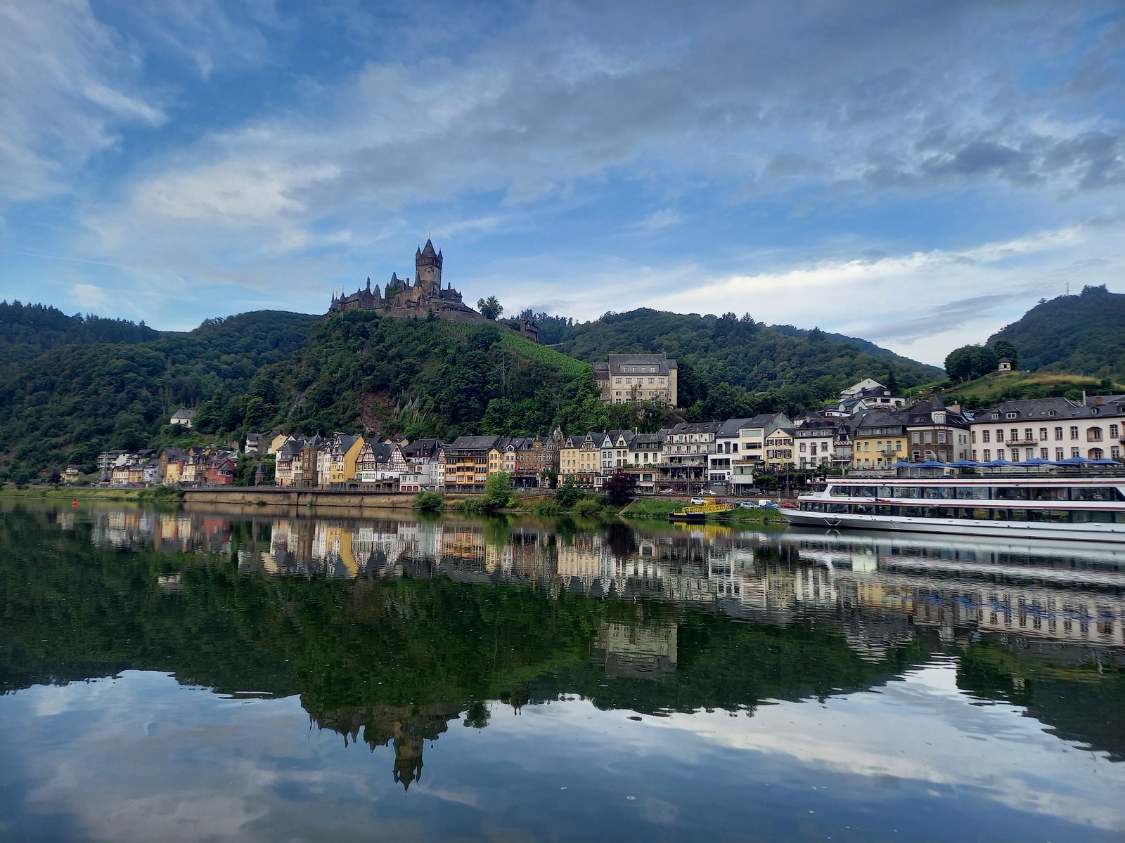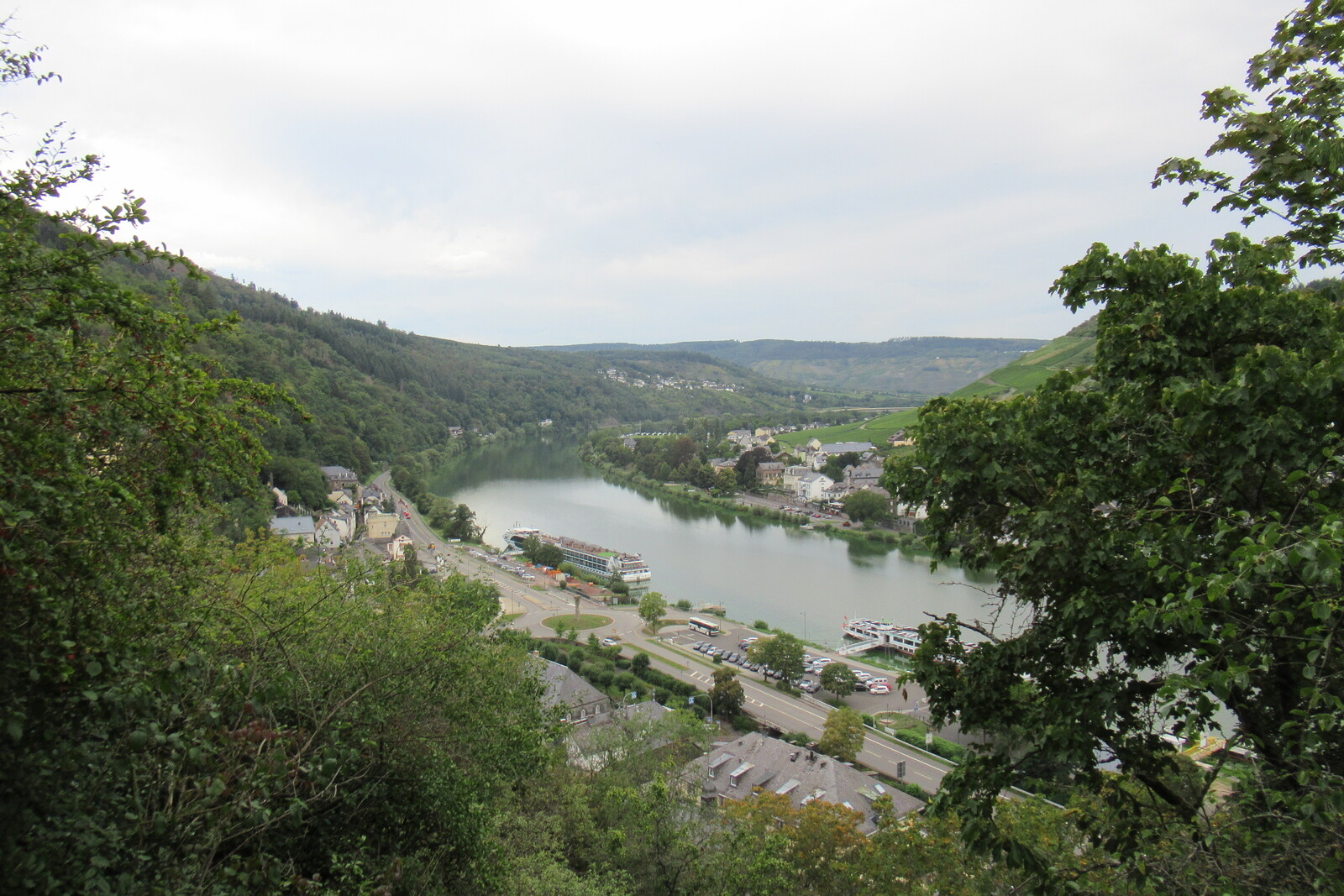 Kreuzfahrtschiff vor Trarbacher Altstadt