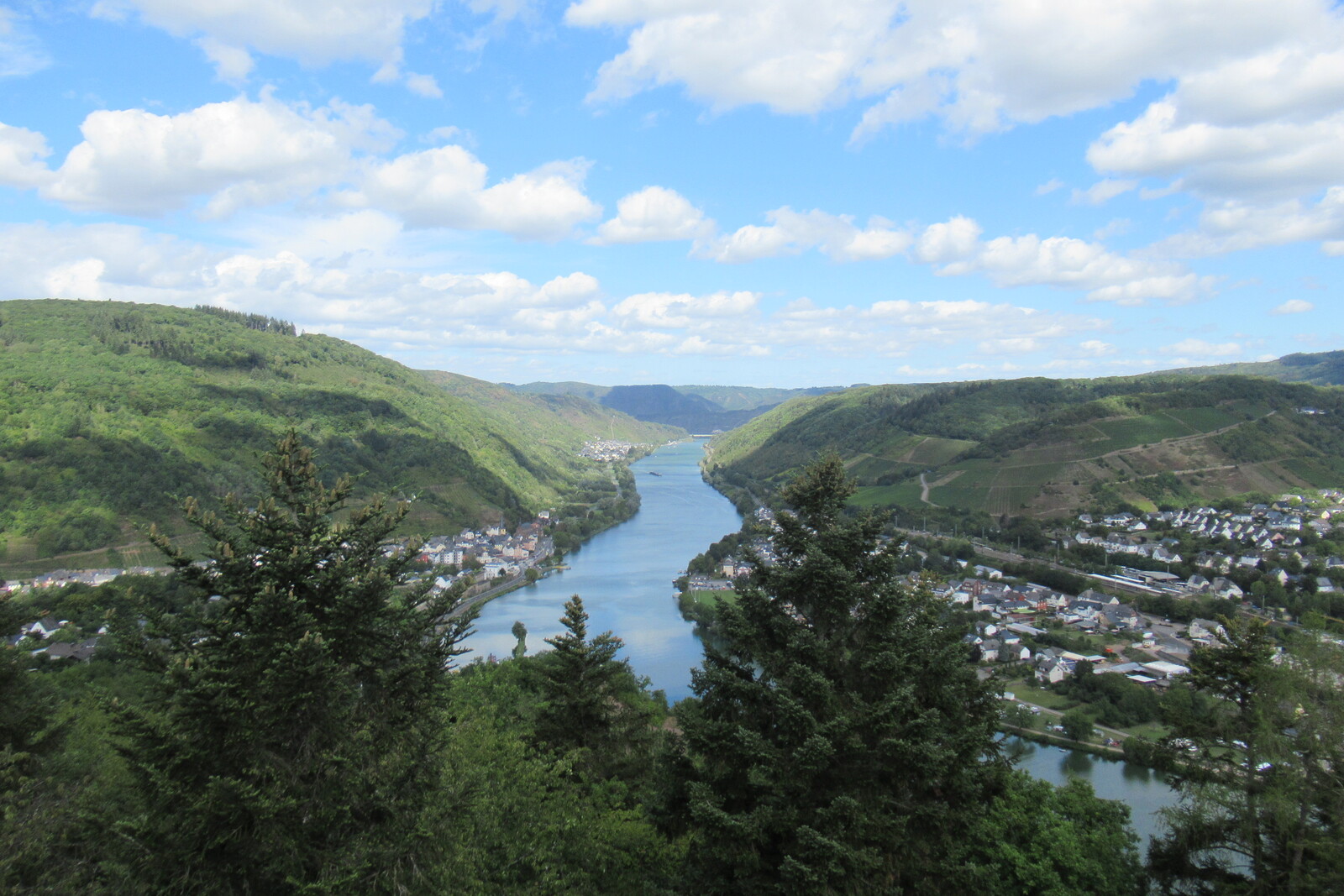 Blick vom Prinzenkopfturm flussabwärts; links Alf, rechts Bullay