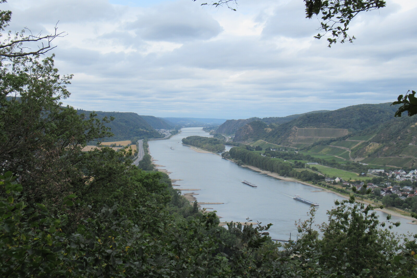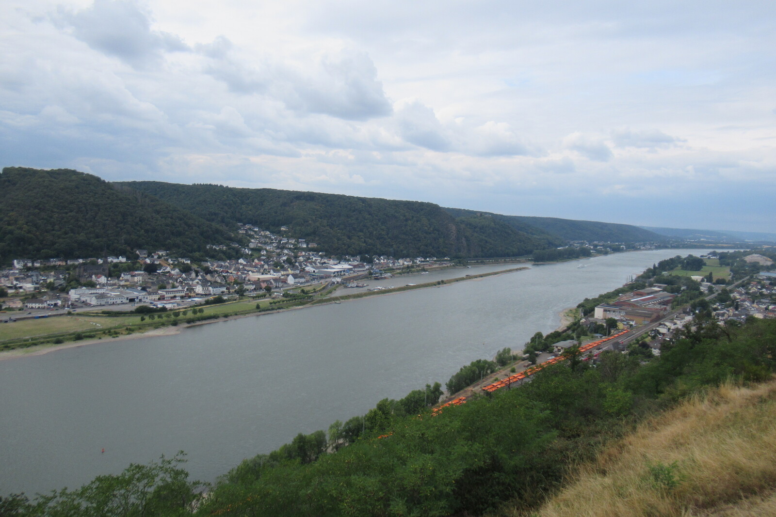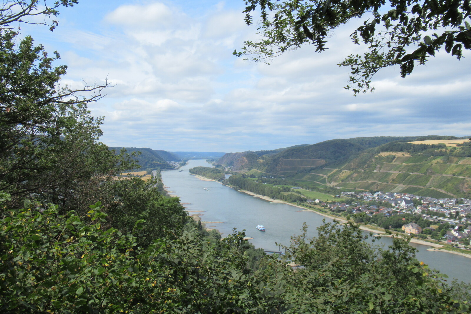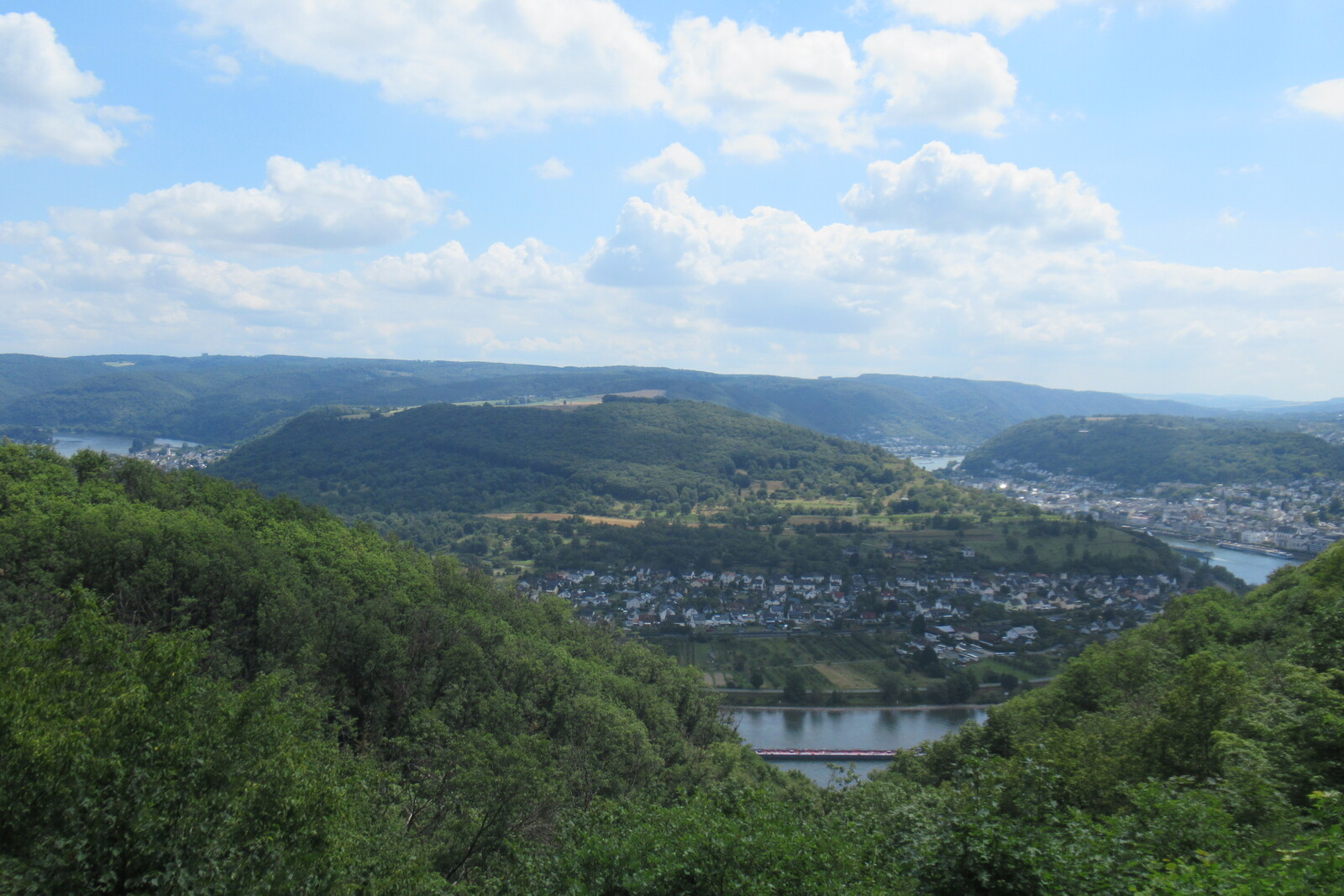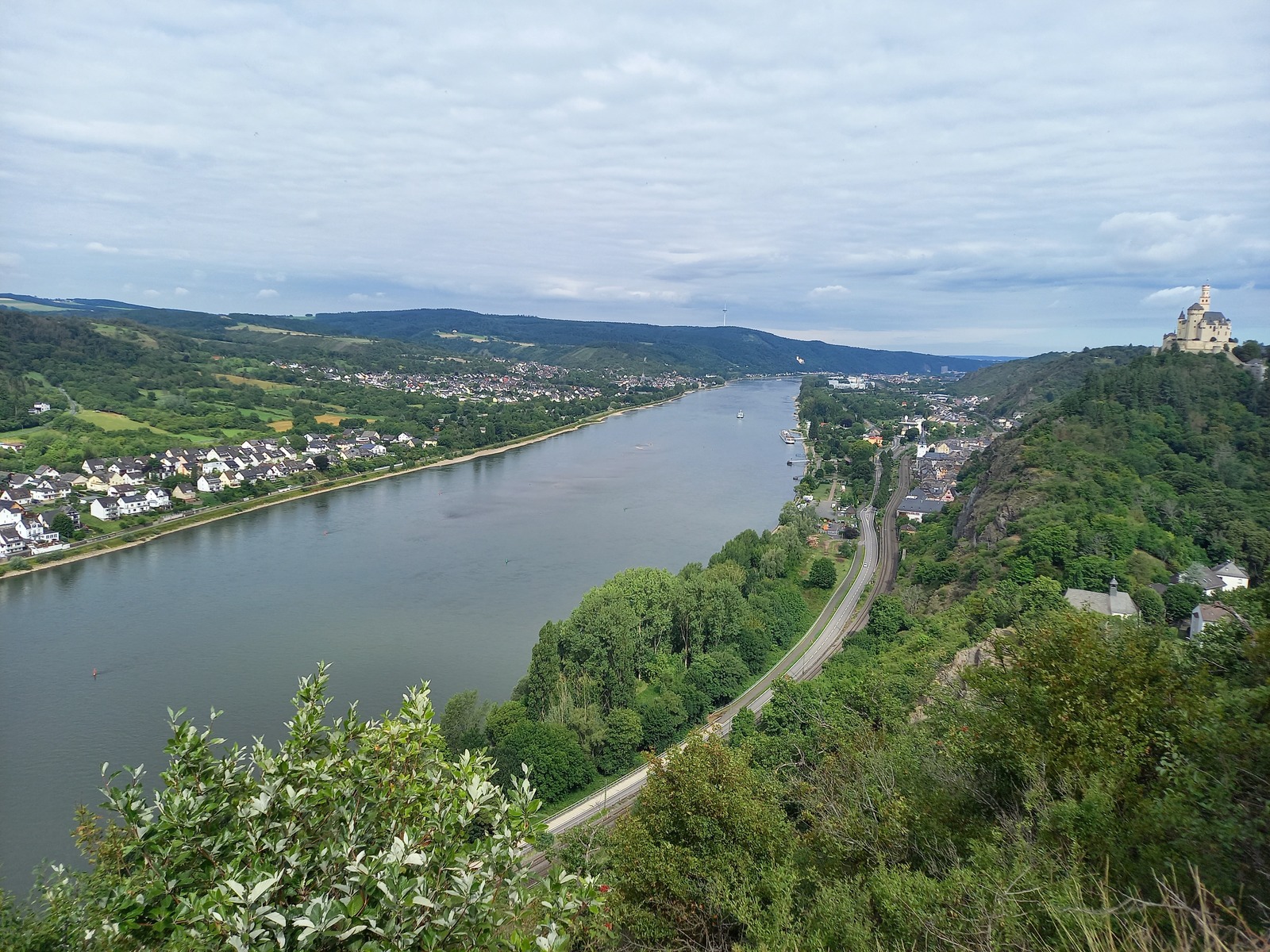 Blick vom Prinzenkopfturm flussaufwärts; vorn Pünderich, hinten Reil