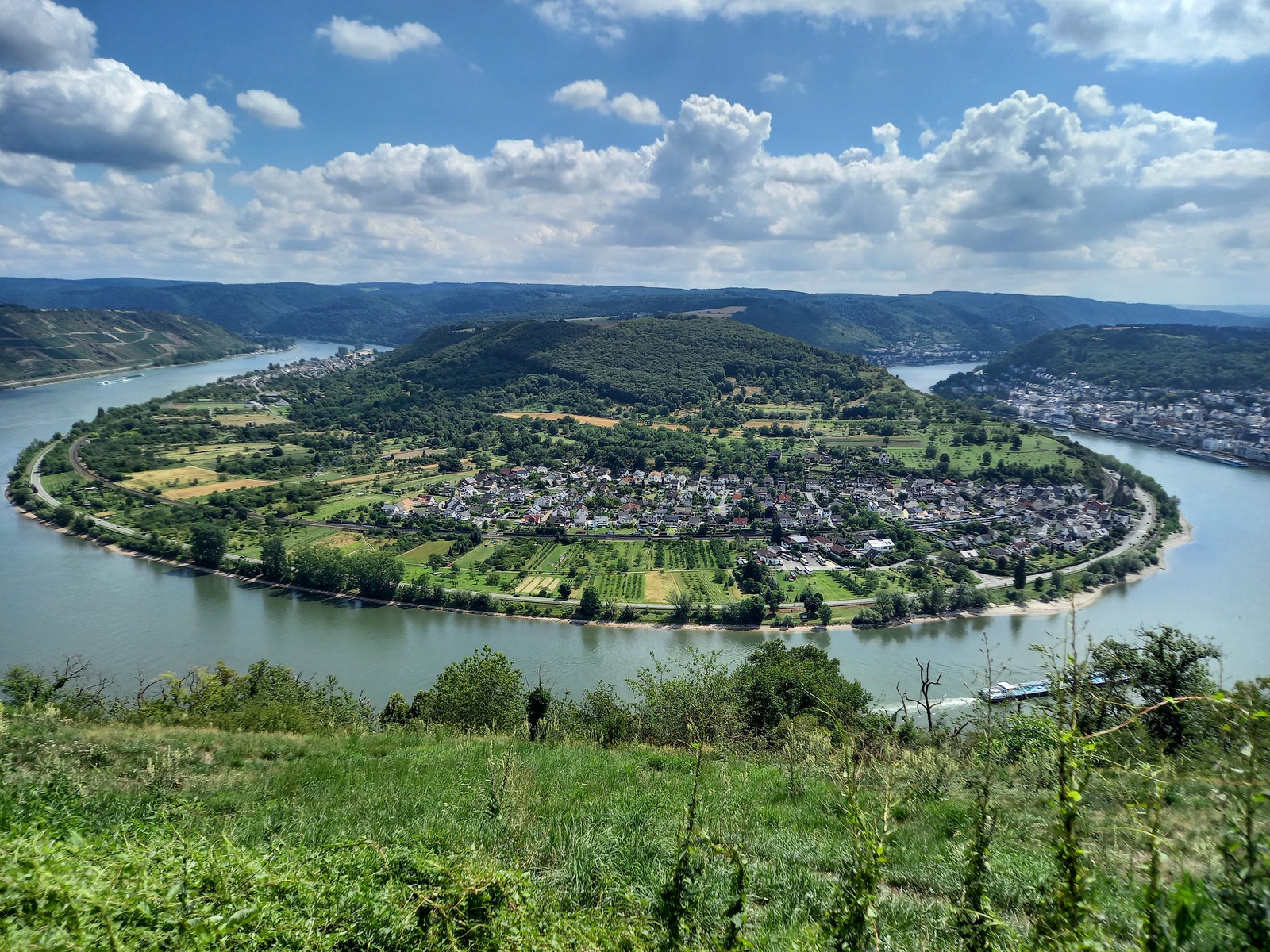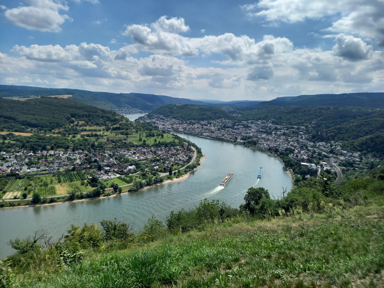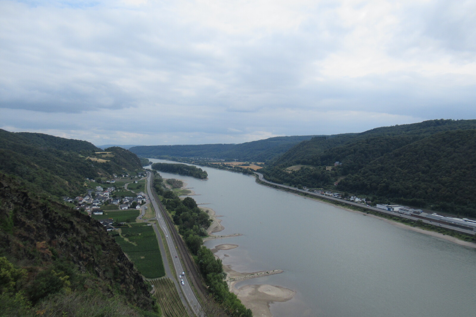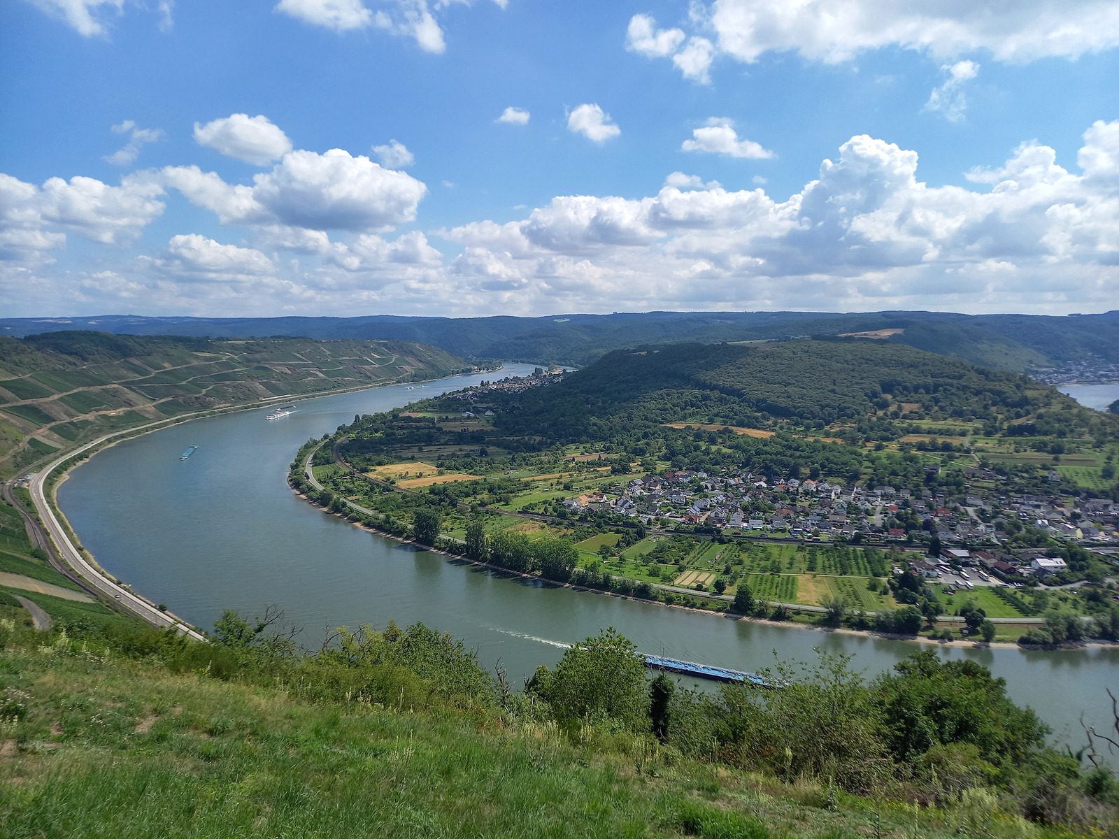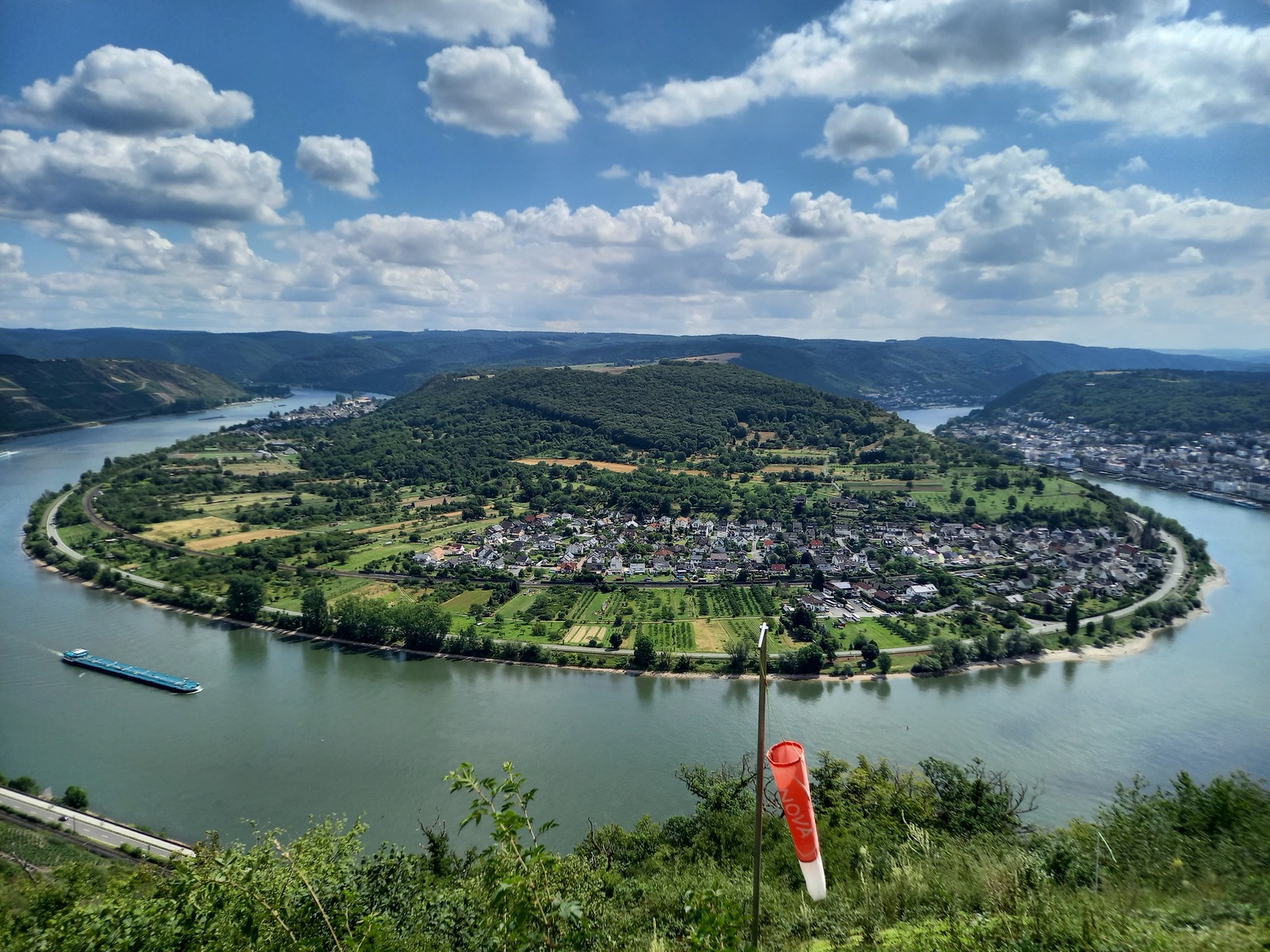Blick vom Prinzenkopfturm flussaufwärts; vorn Pünderich, hinten Reil
