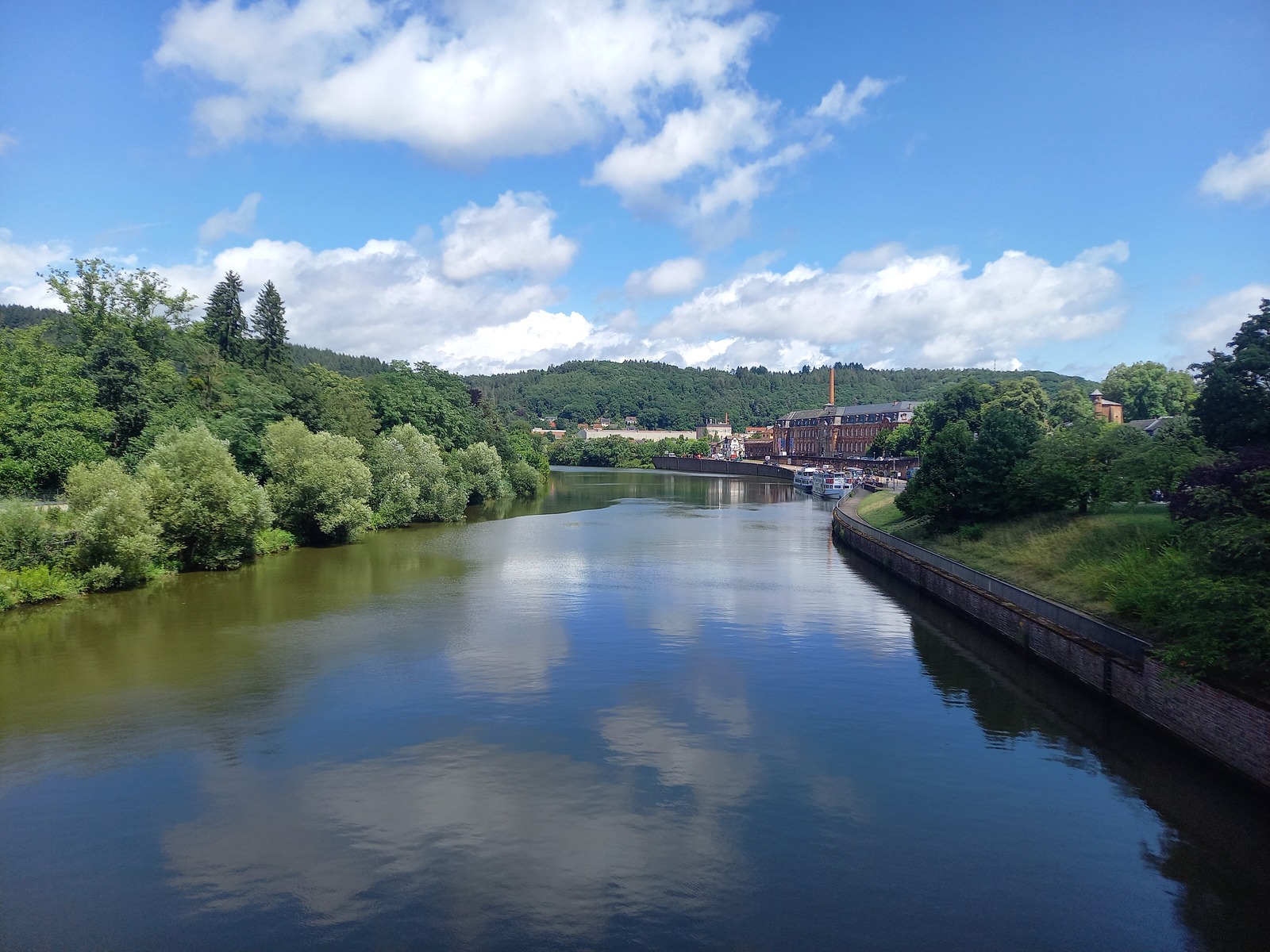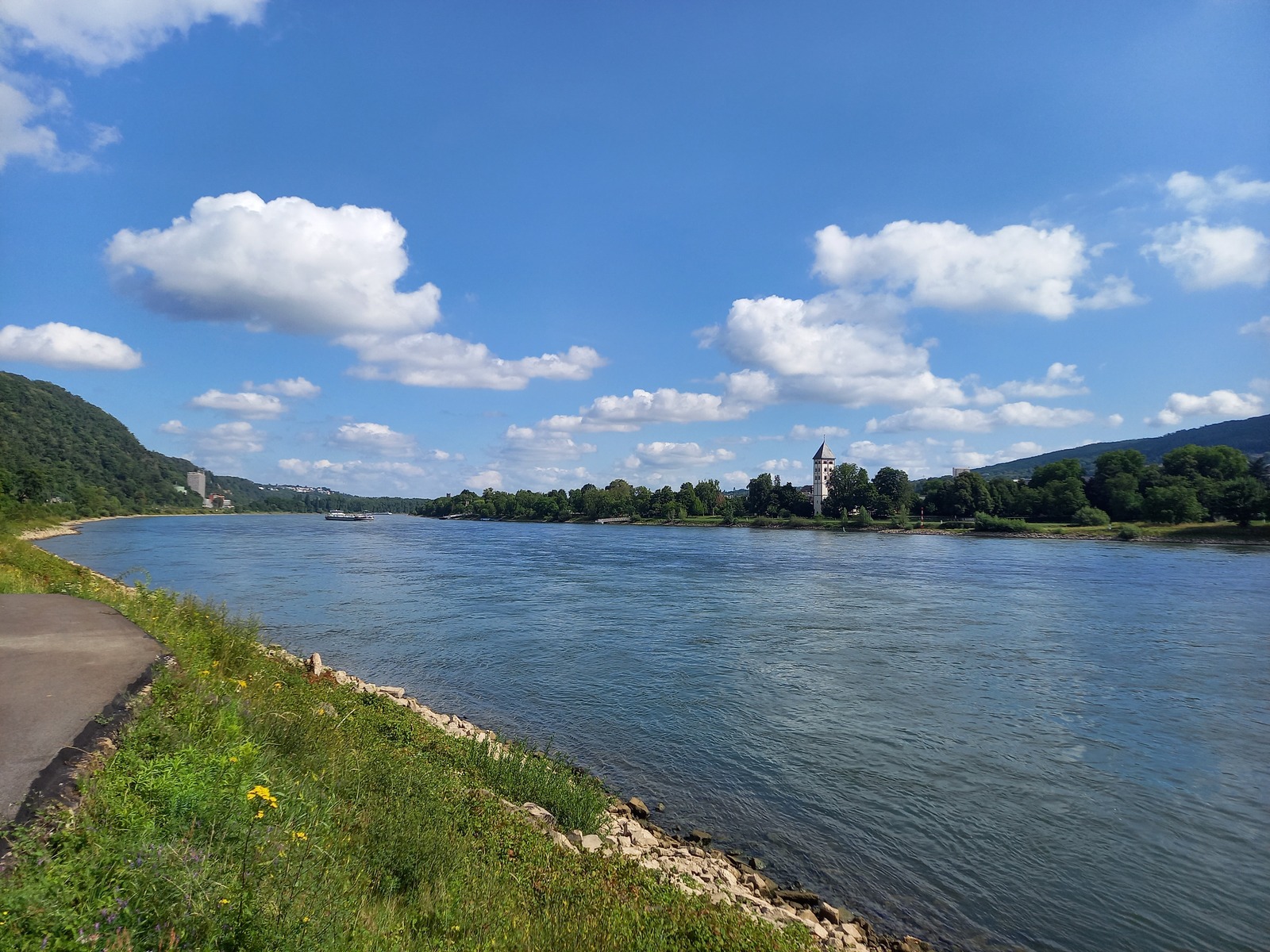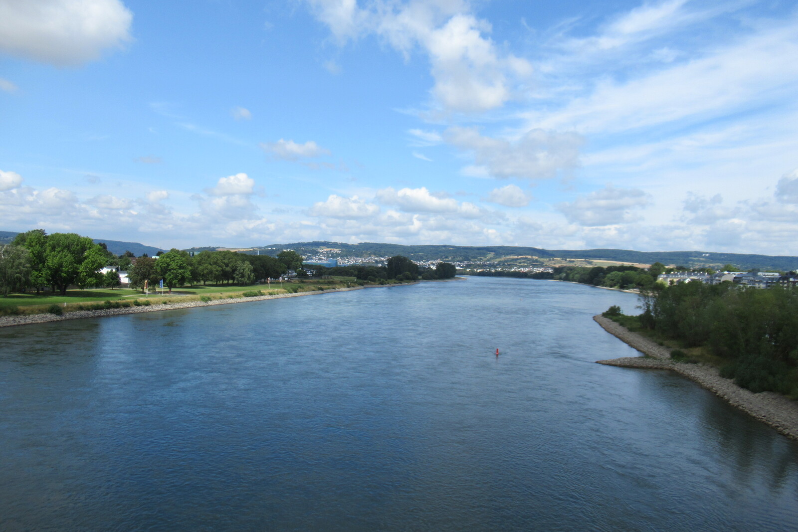 Blick von der Brücke Mülheim stromaufwärts