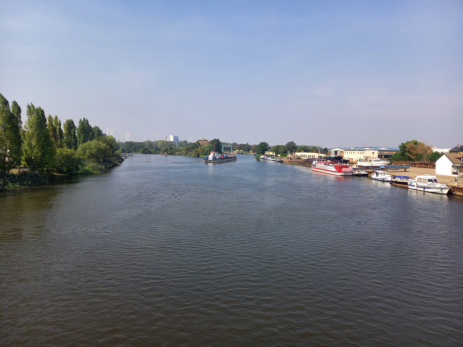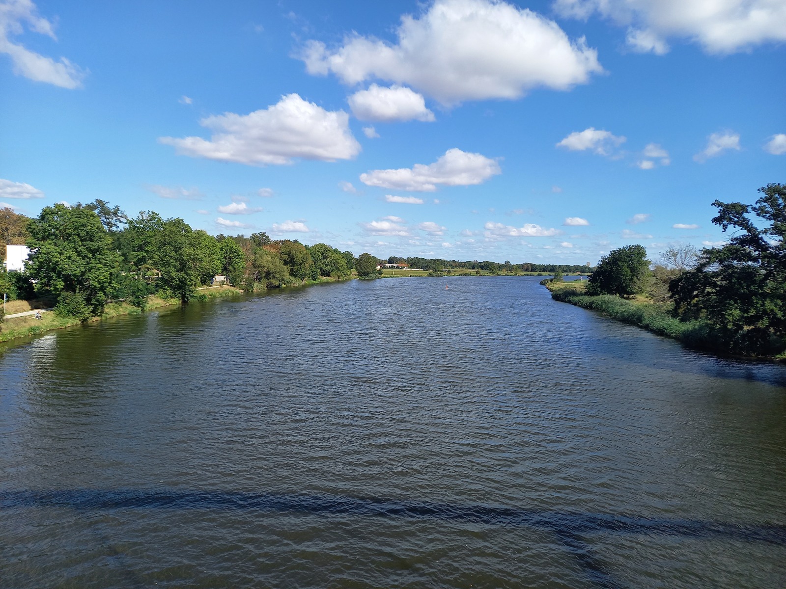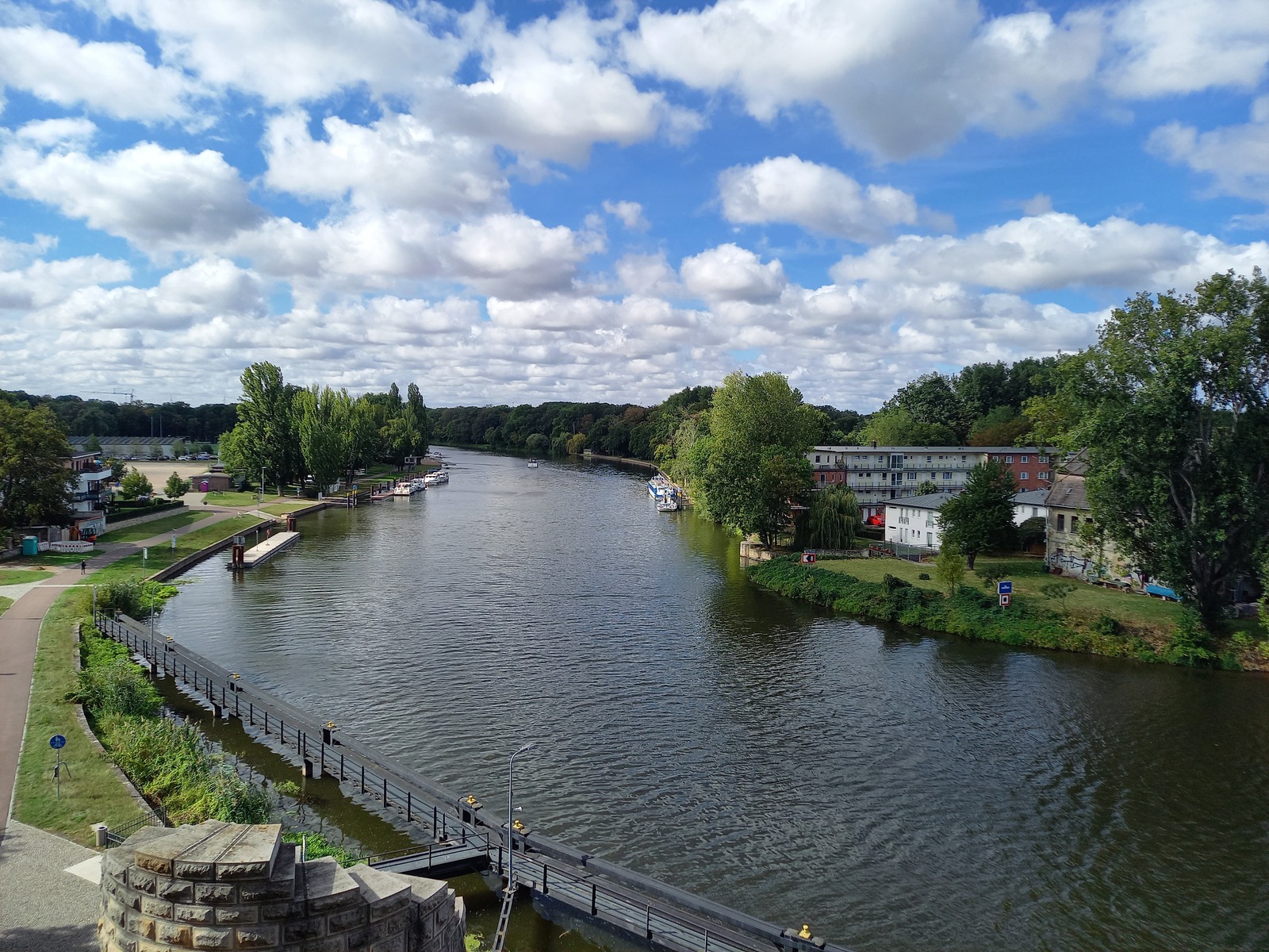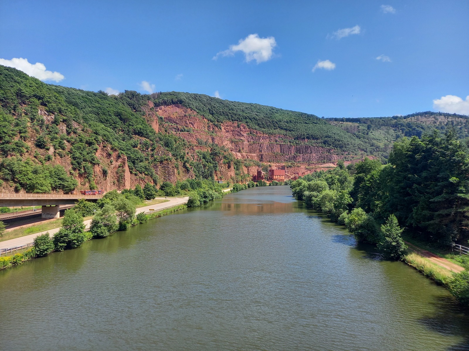 Blick von der Brücke Mülheim stromaufwärts