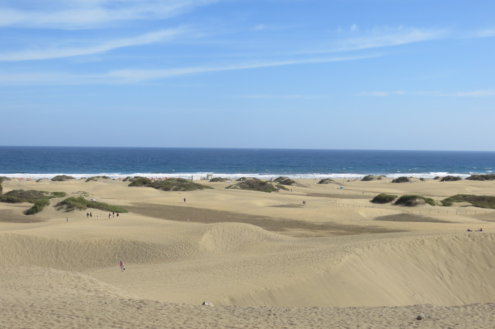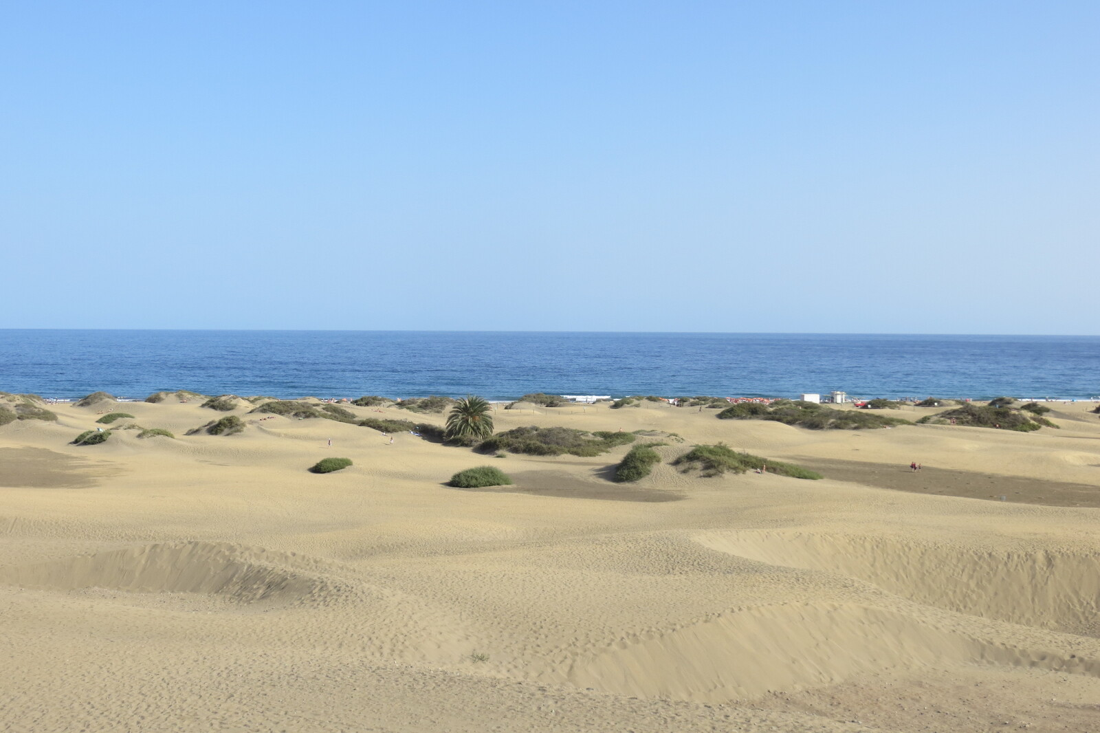 Blick von der Promenade in Playa les Ingles über die Dünen aufs Meer