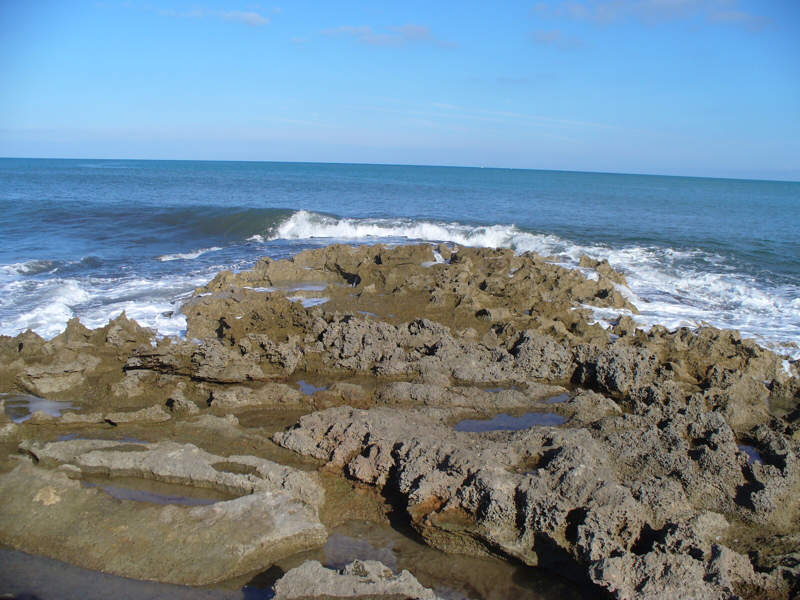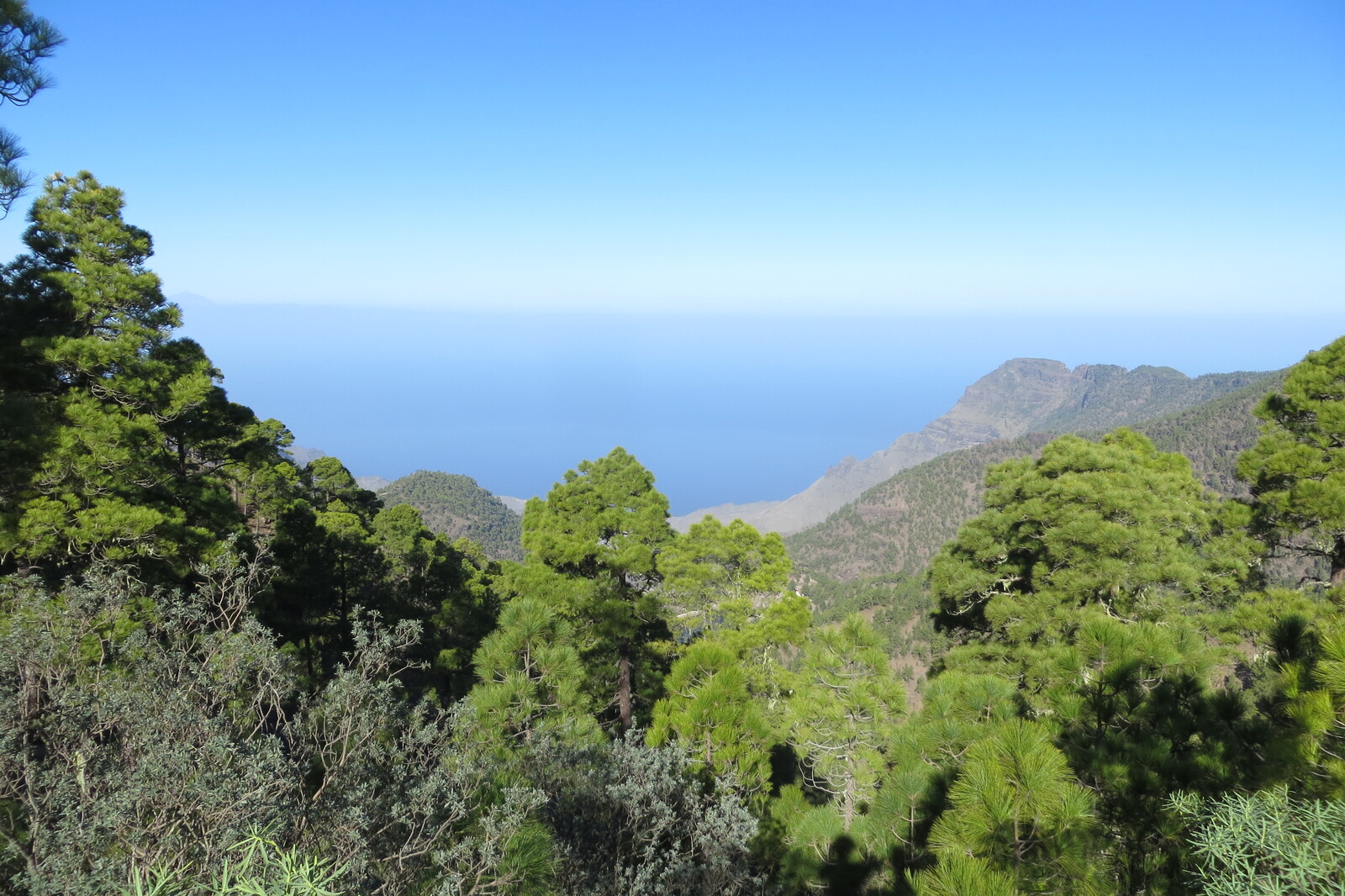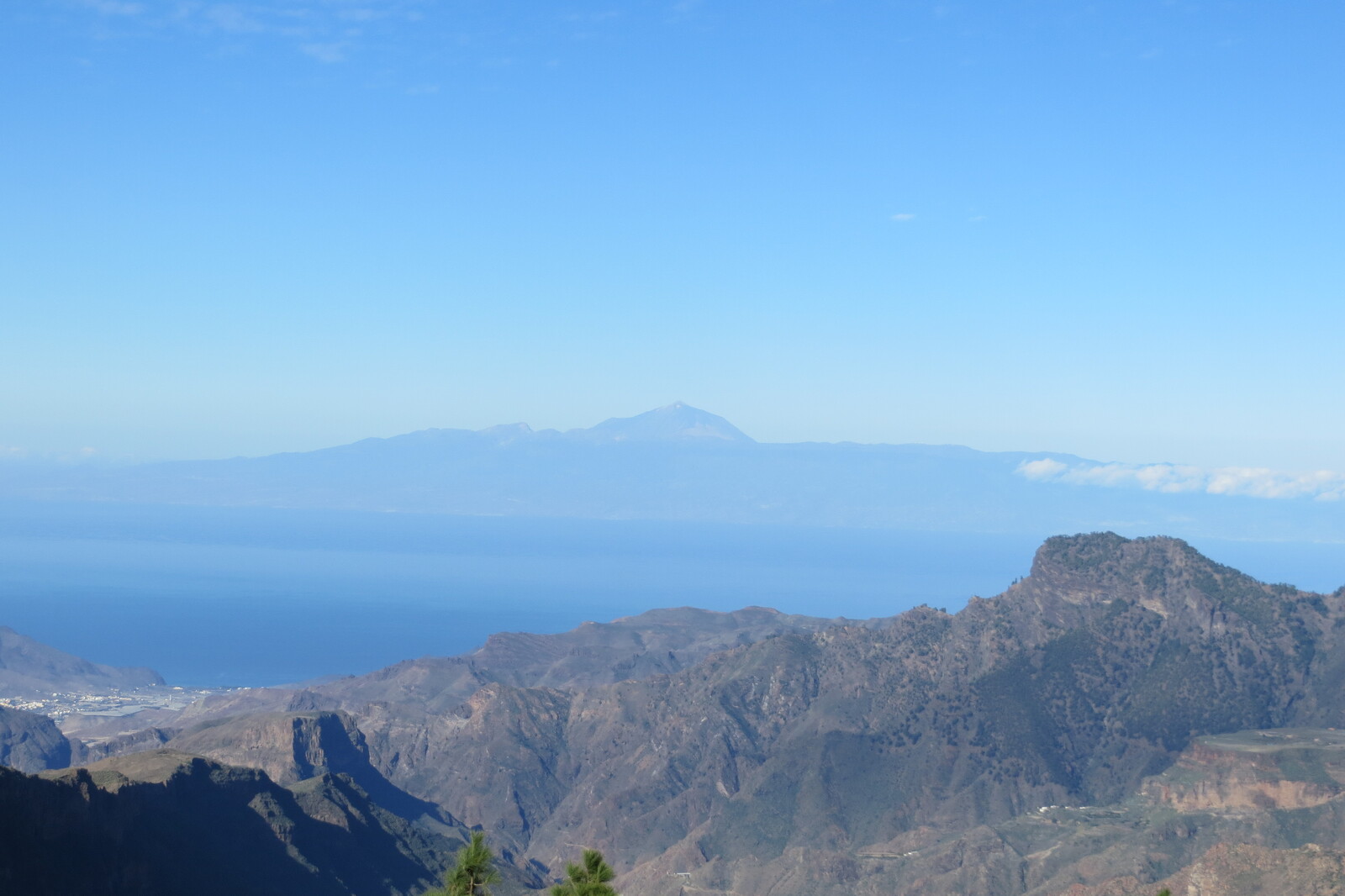 Blick vom Aufstieg zum Altavista zur Westküste; links ist der Pico del Teide auf Teneriffa zu erahnen.
