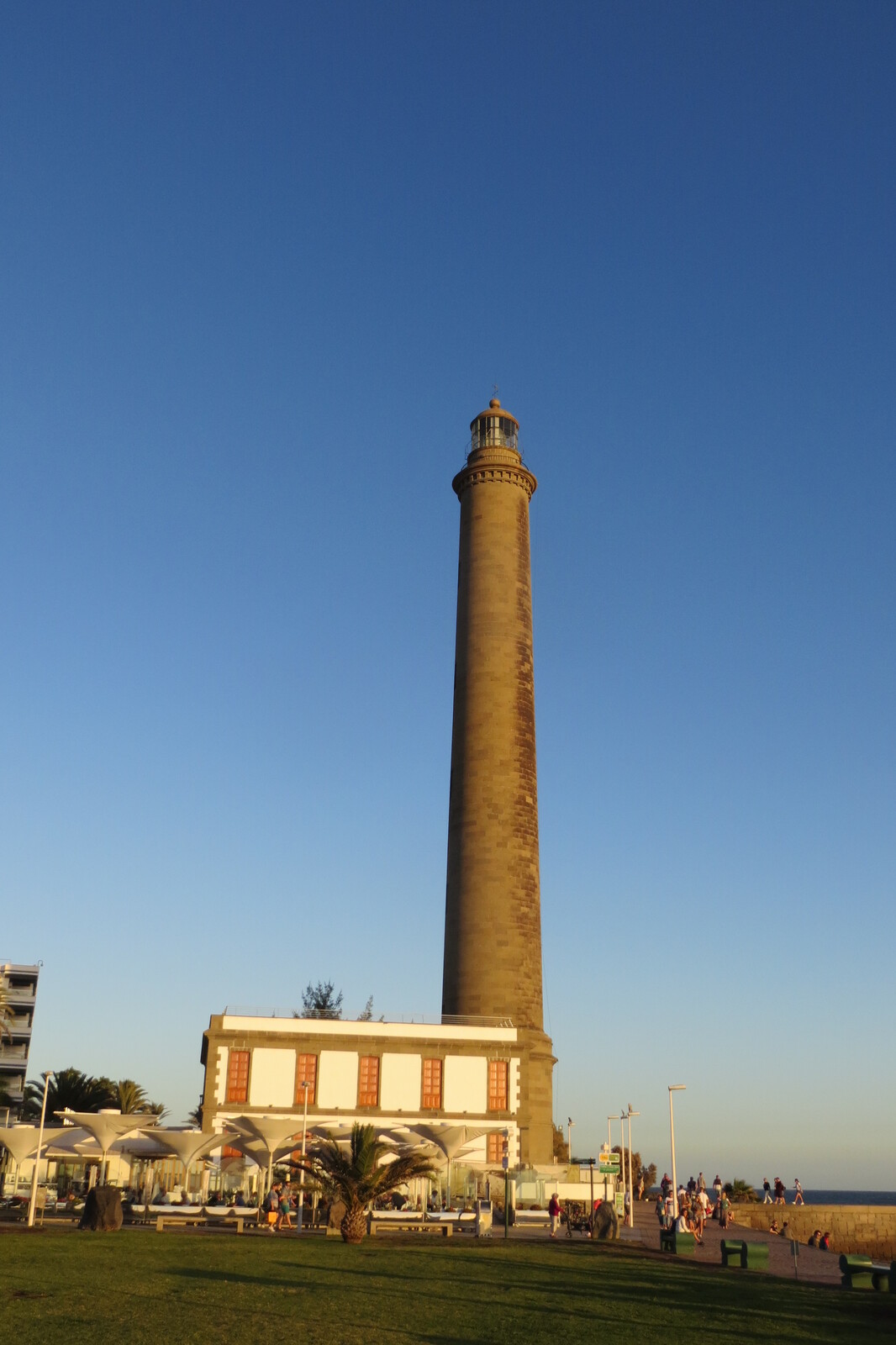 Leuchtturm von Maspalomas im Abendlicht von der Mole aus