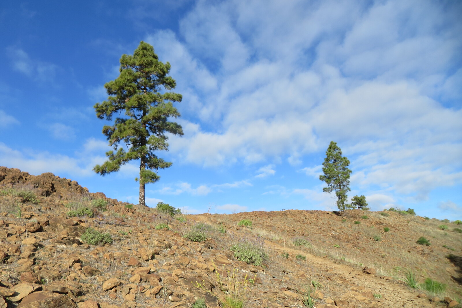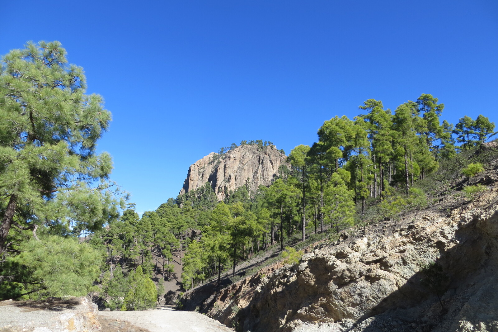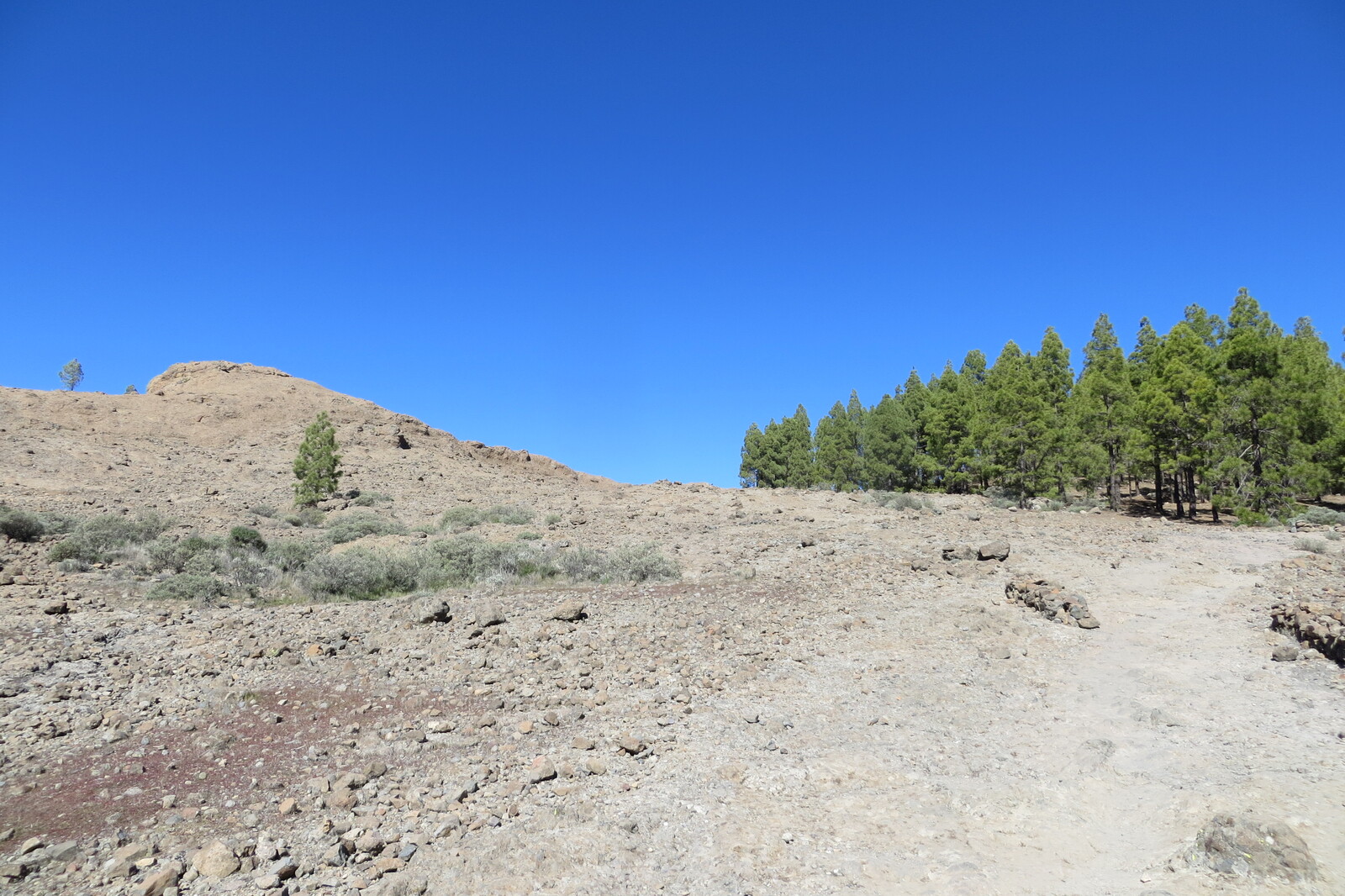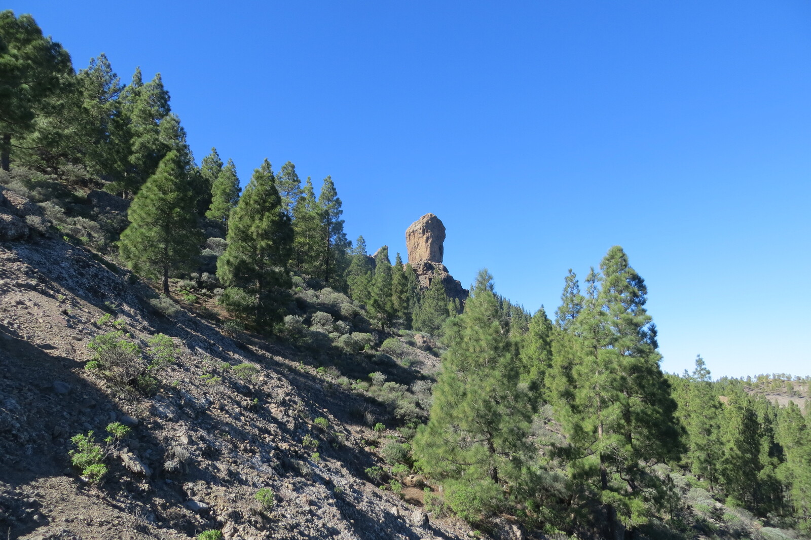 Geröllhalde und Kiefernwald am Weg von Cruz Grande zum Ventana del Nublo