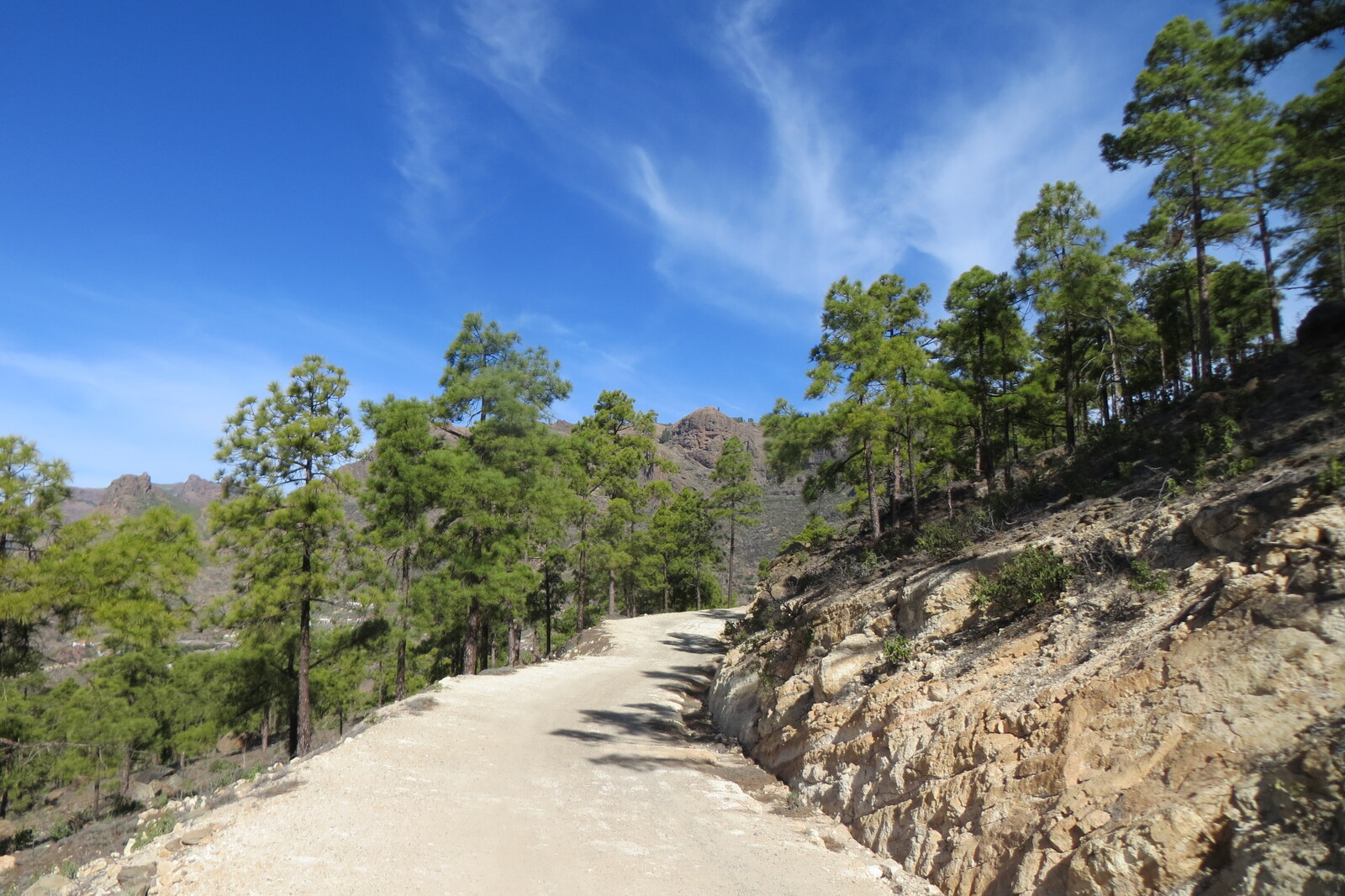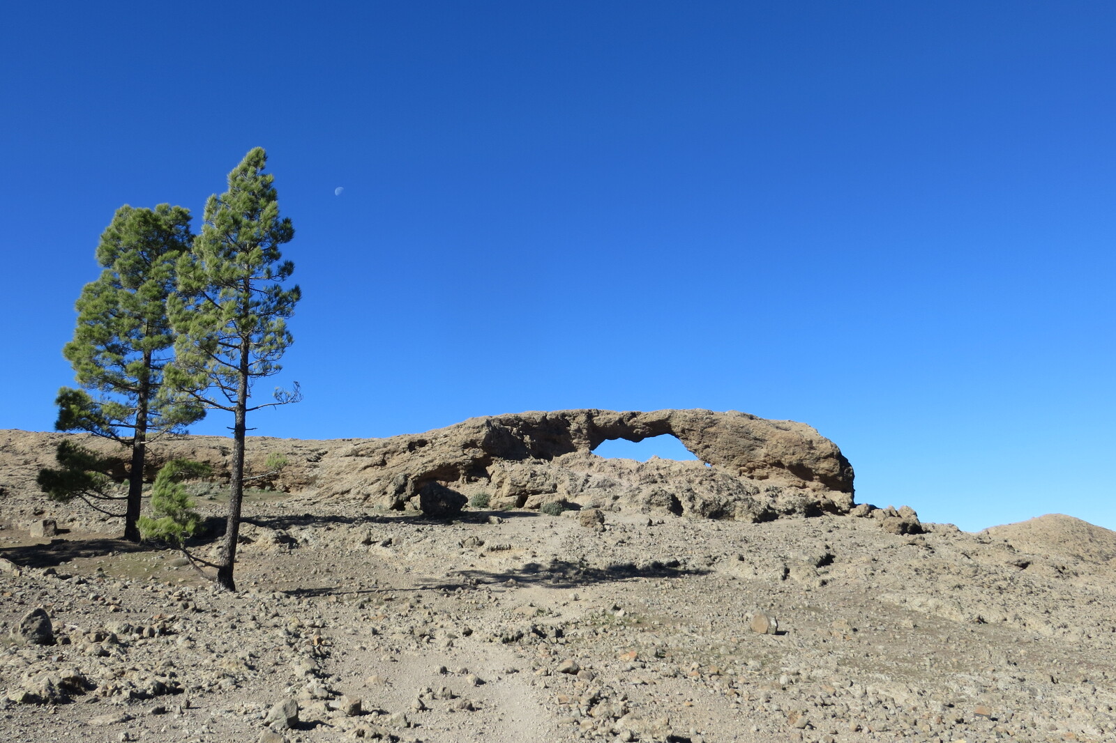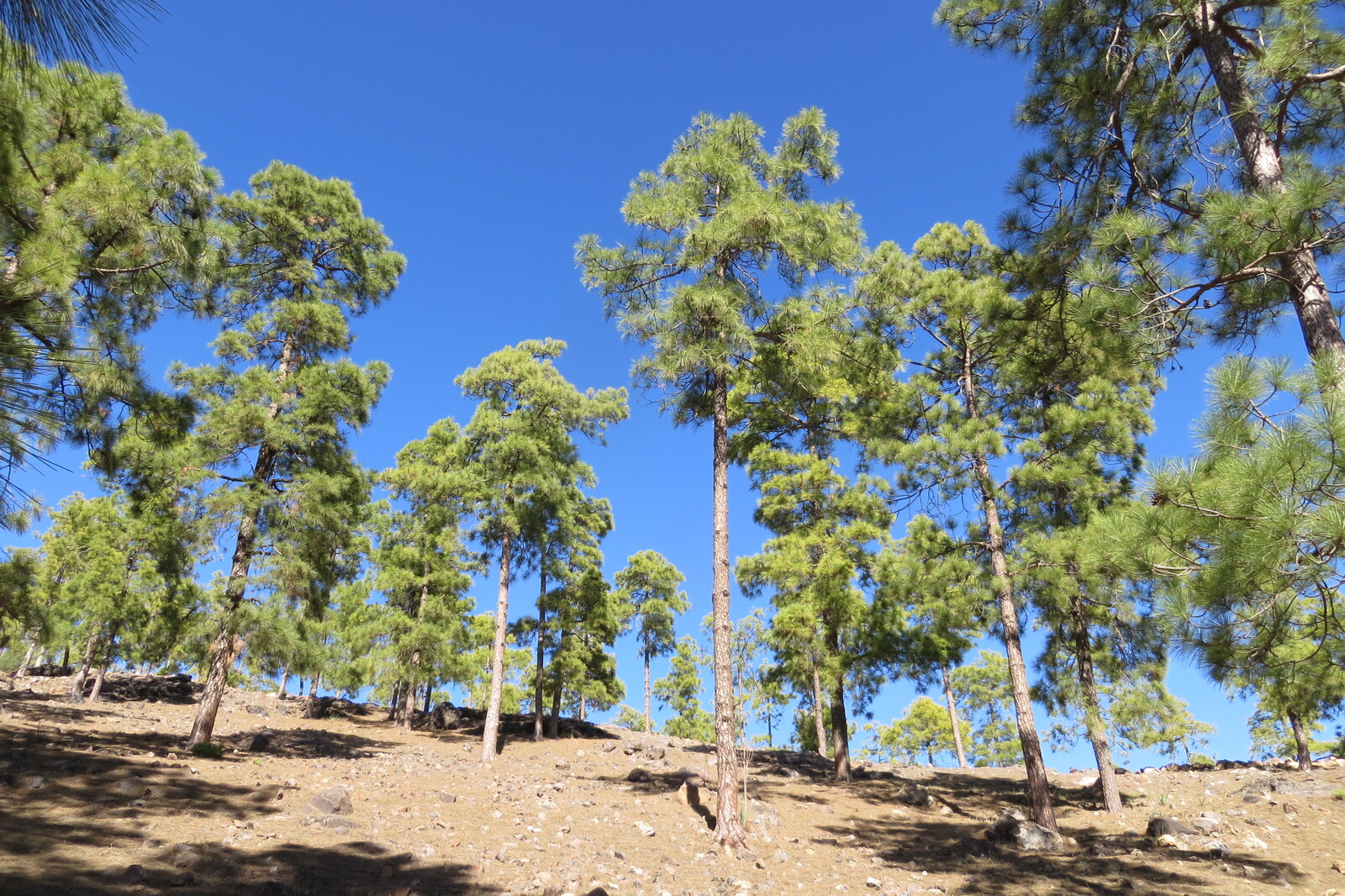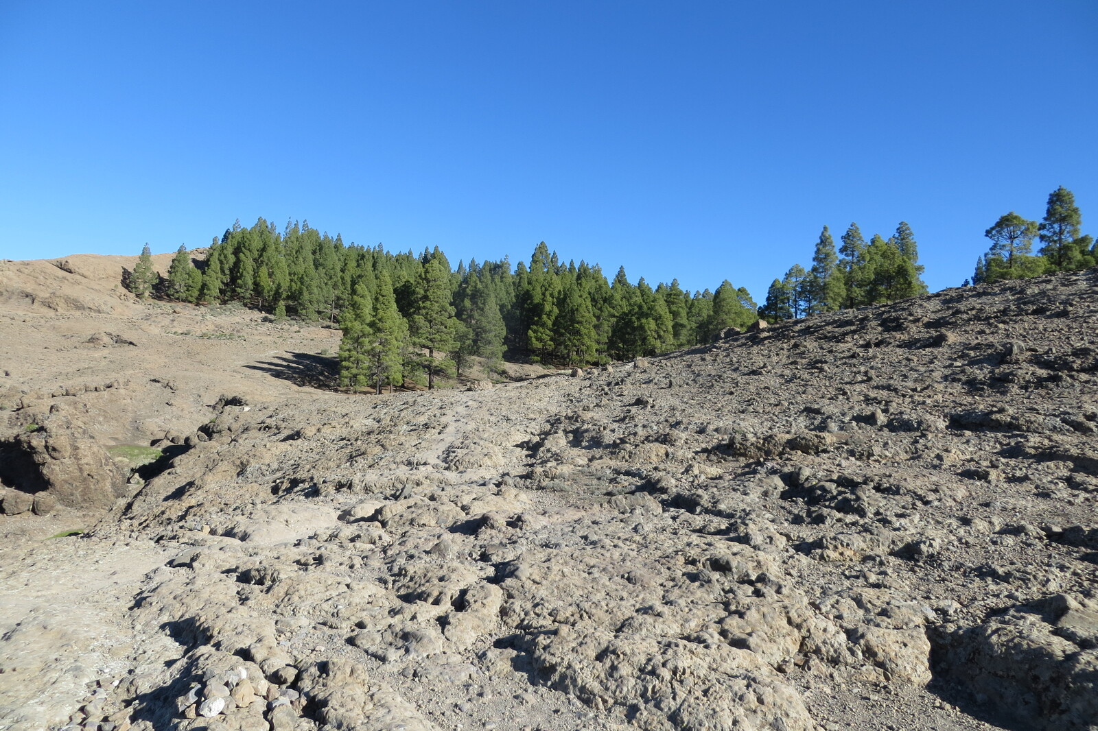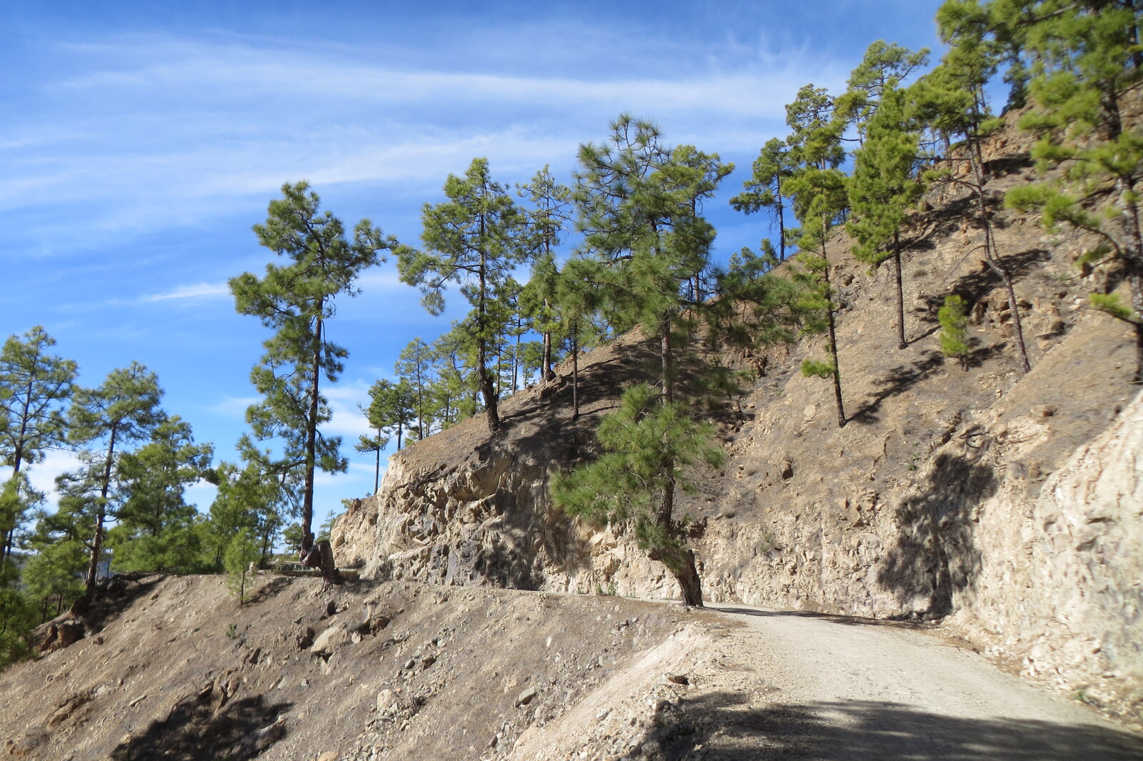 Geröllhalde und Kiefernwald am Weg von Cruz Grande zum Ventana del Nublo