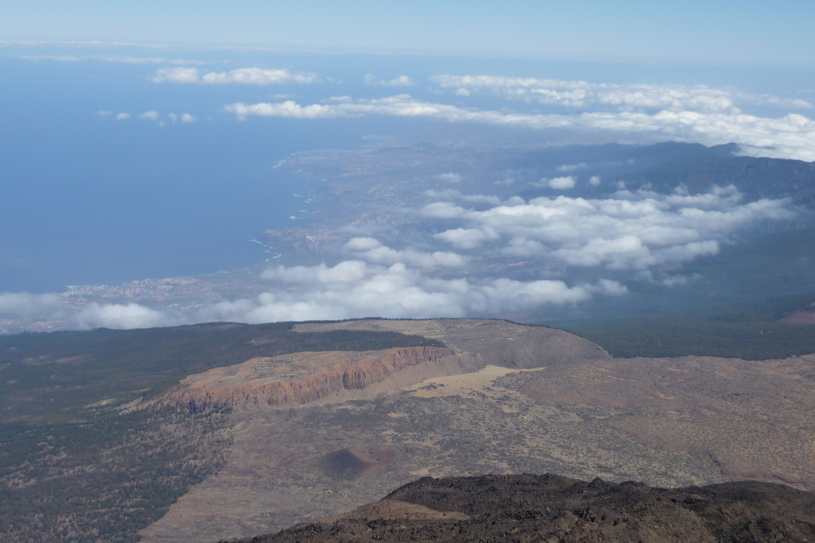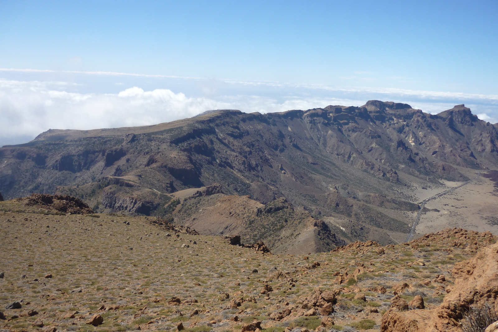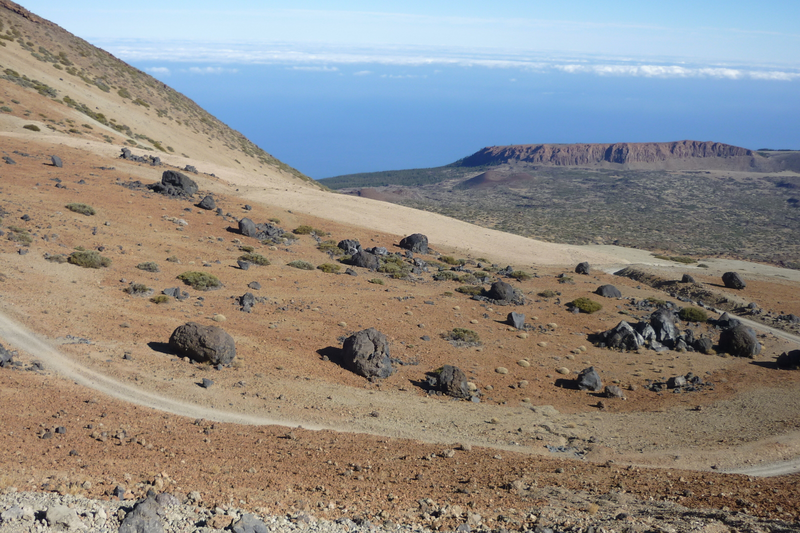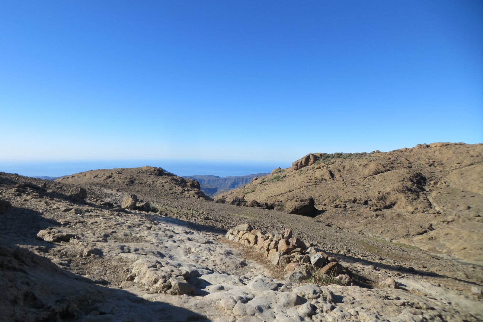 Blick vom Weg von Cruz Grande zum Ventana del Nublo zum Meer