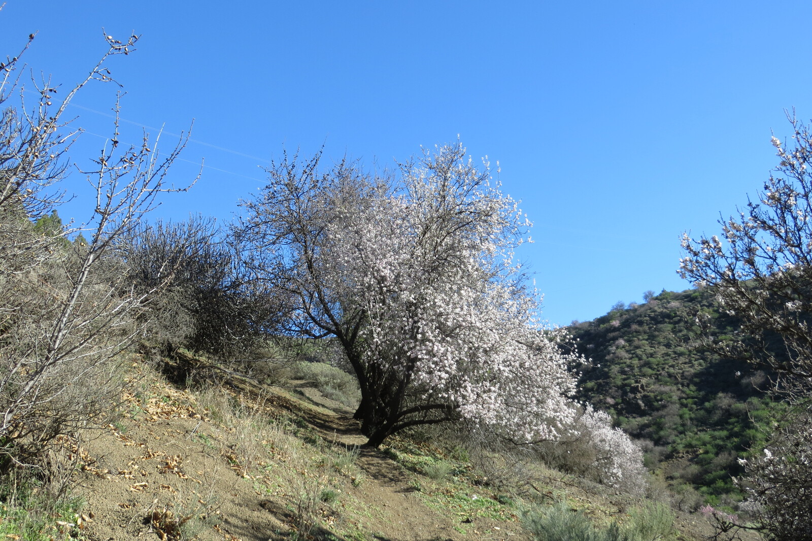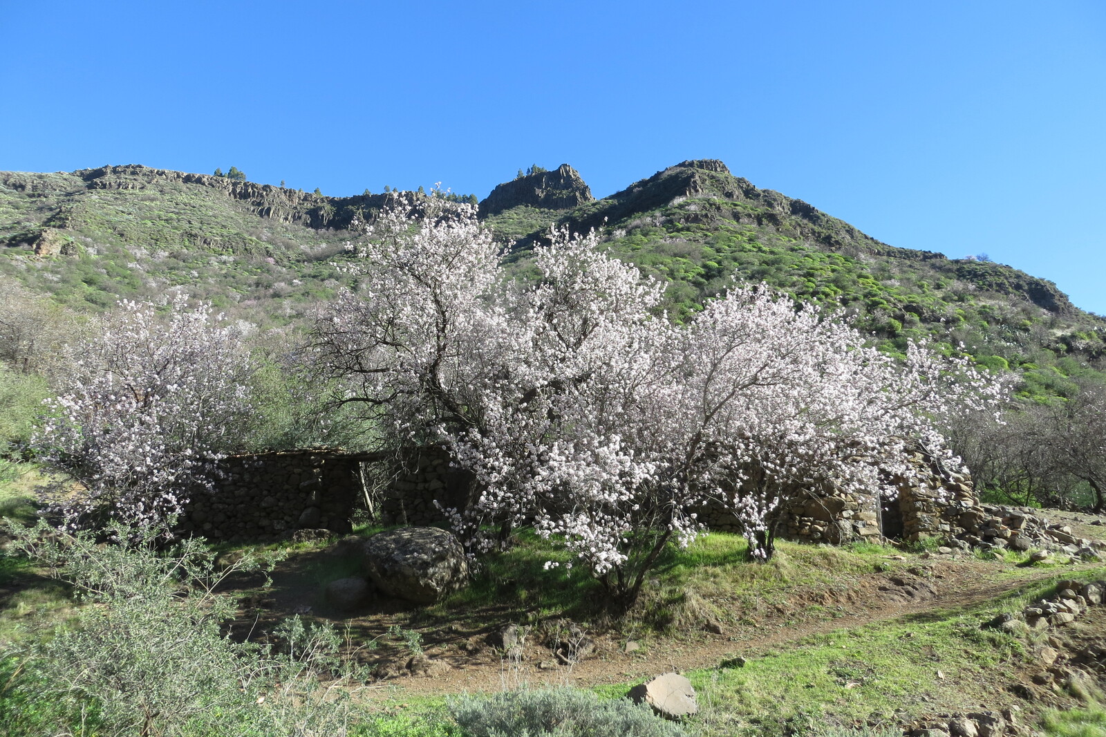blühende Mandelbäume am Weg zwischen der Guayadeque-Schlucht und der Caldera Los Martles