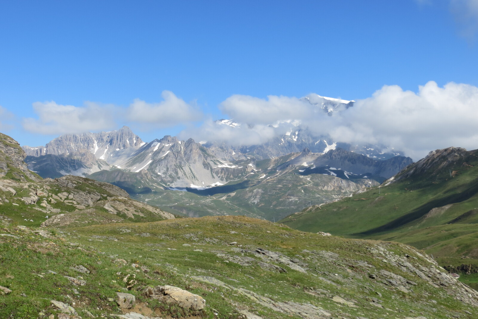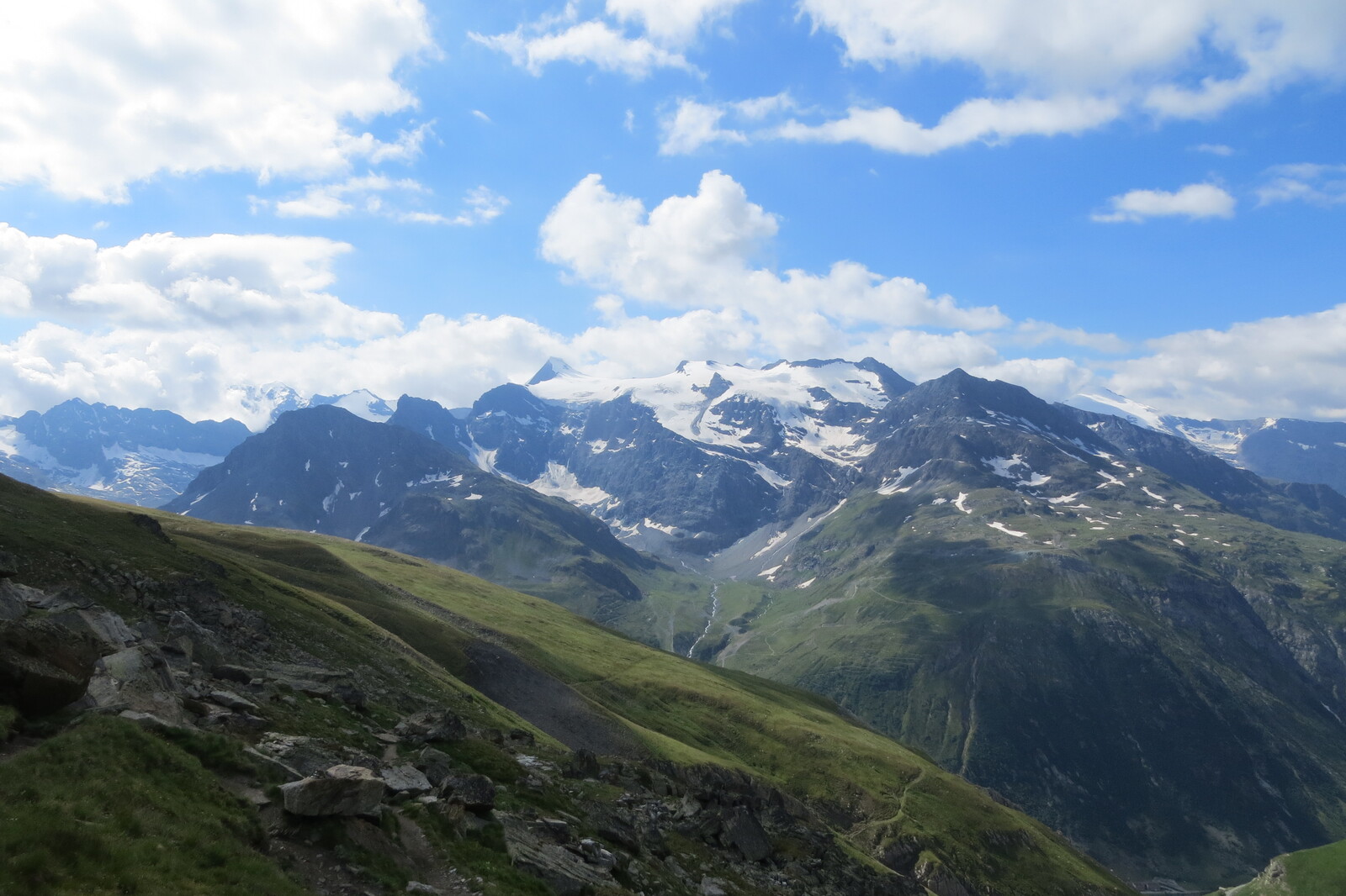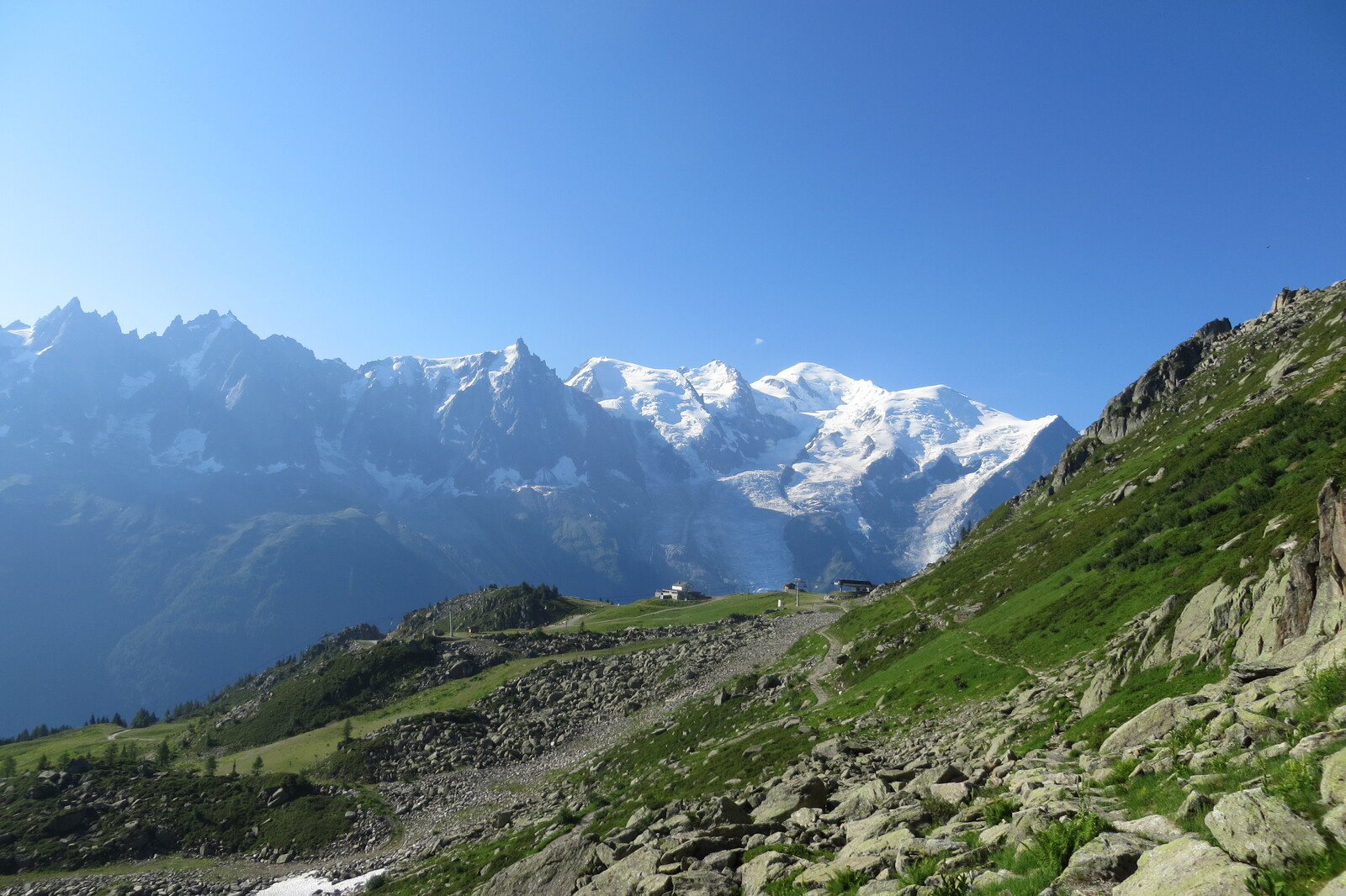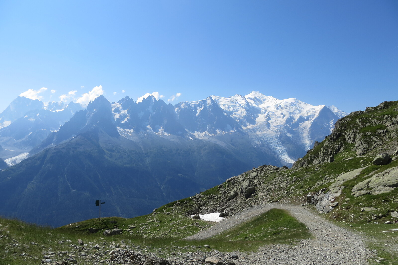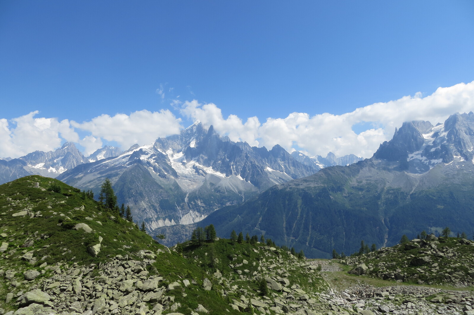 Blick über Pranplaz auf das Mont-Blanc-Massiv