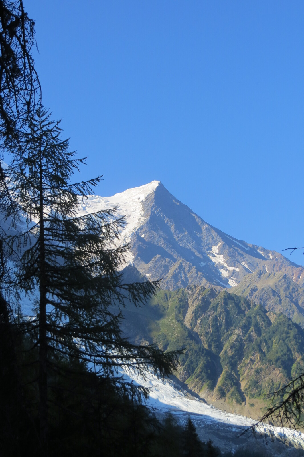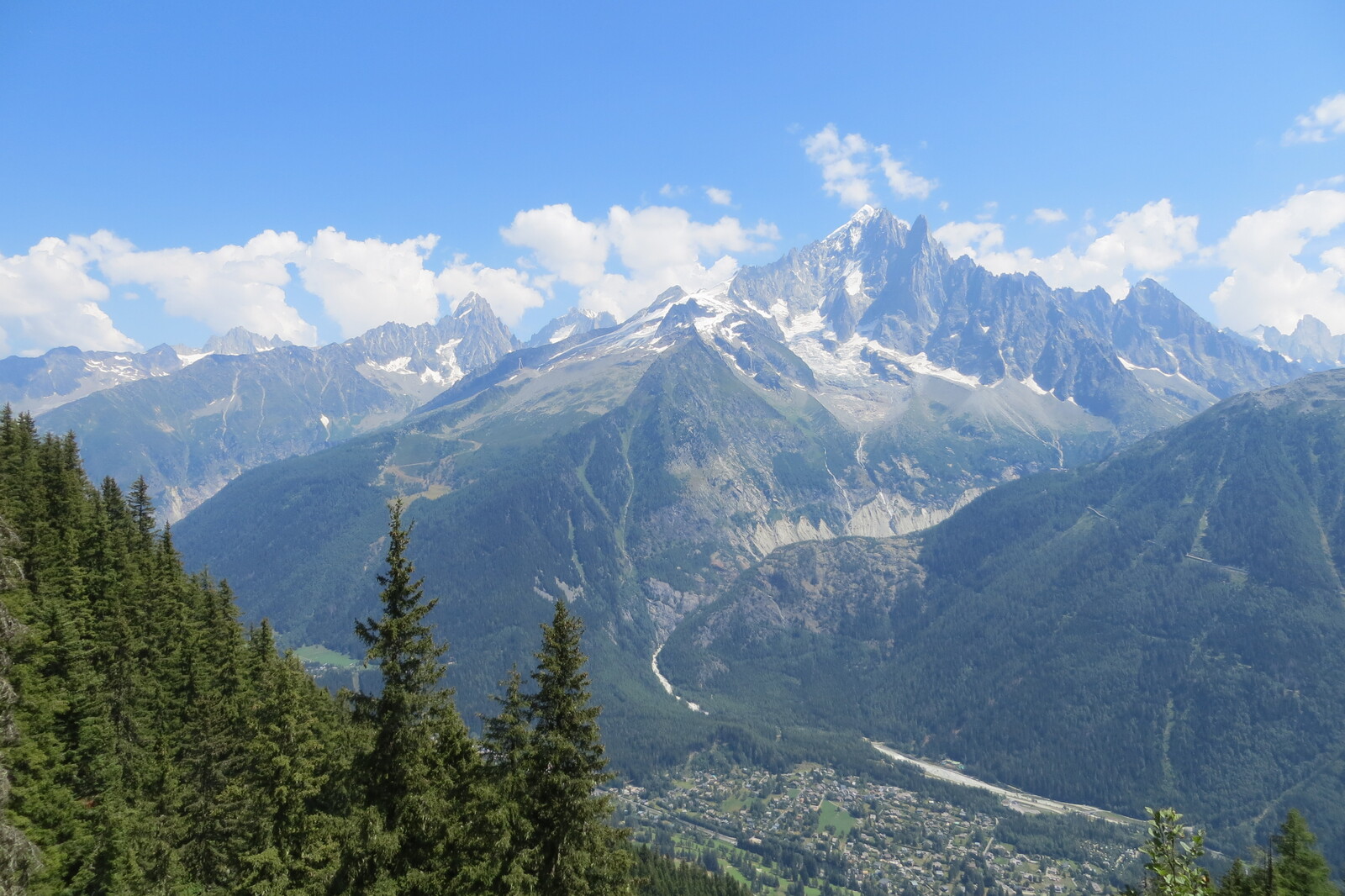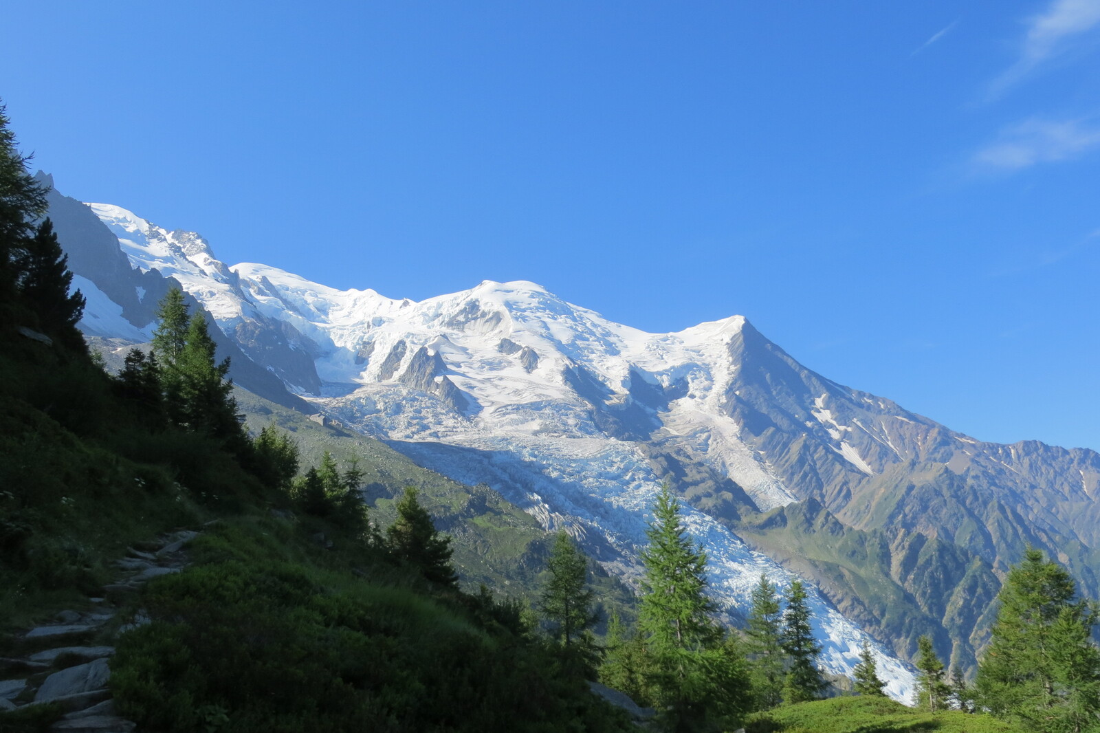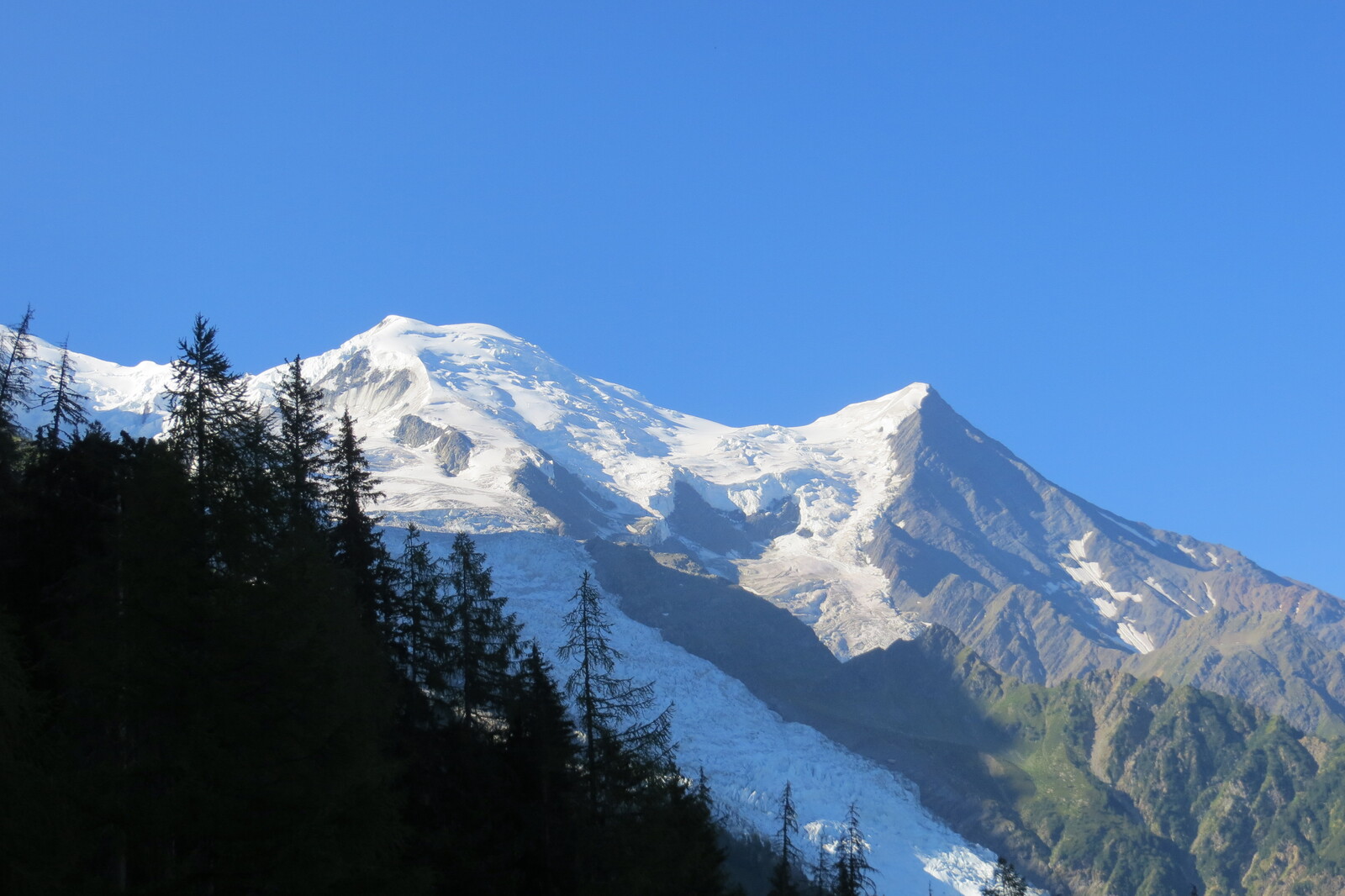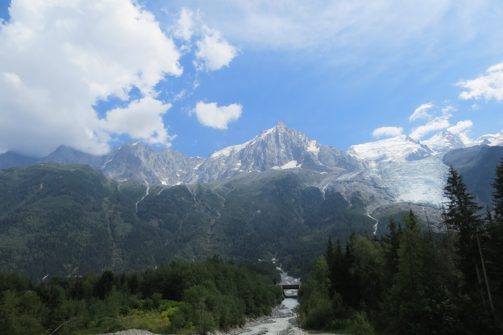 Blick vom Arvetal unterhalb von Chamonix auf das Mont-Blanc-Massiv